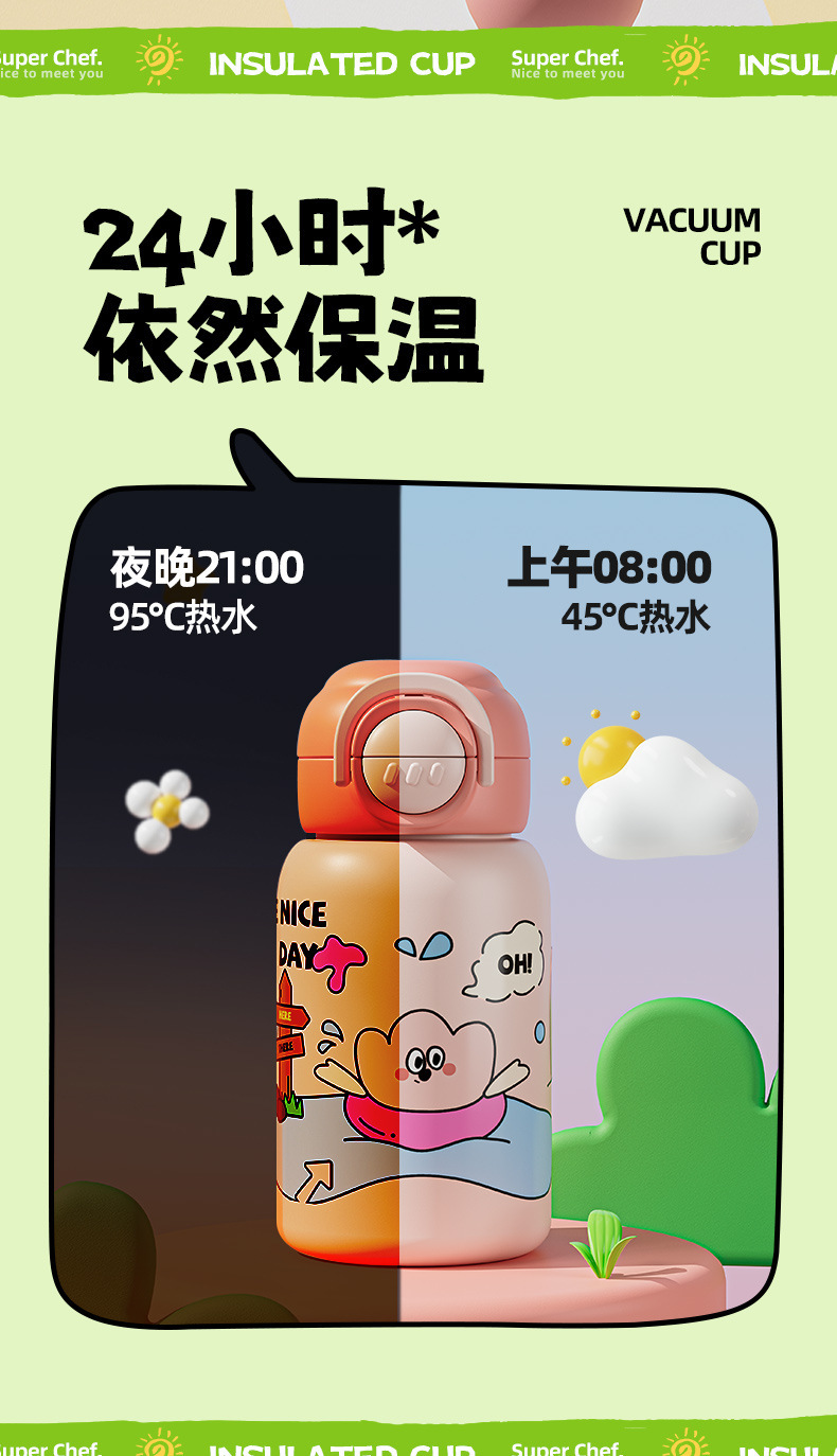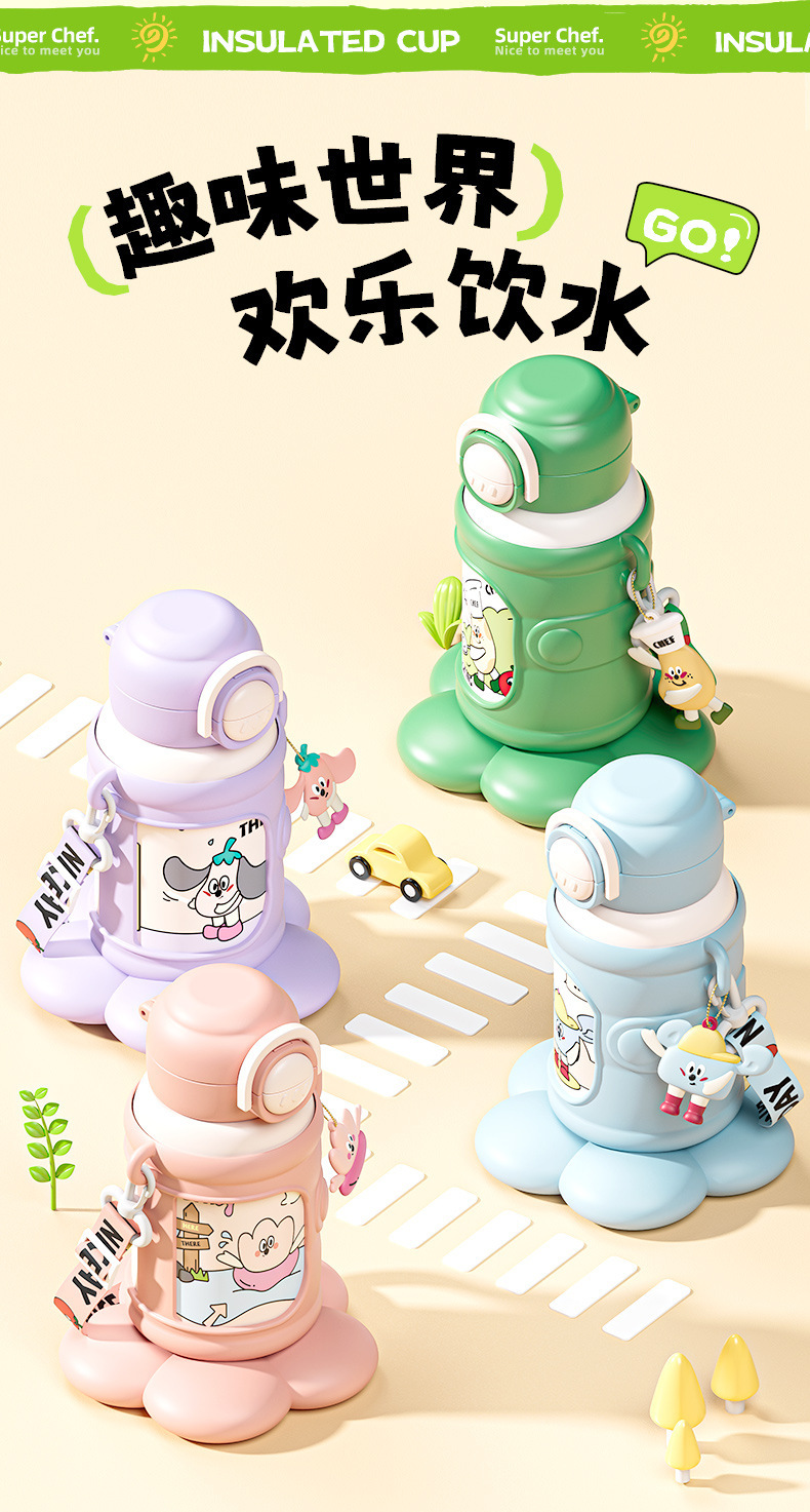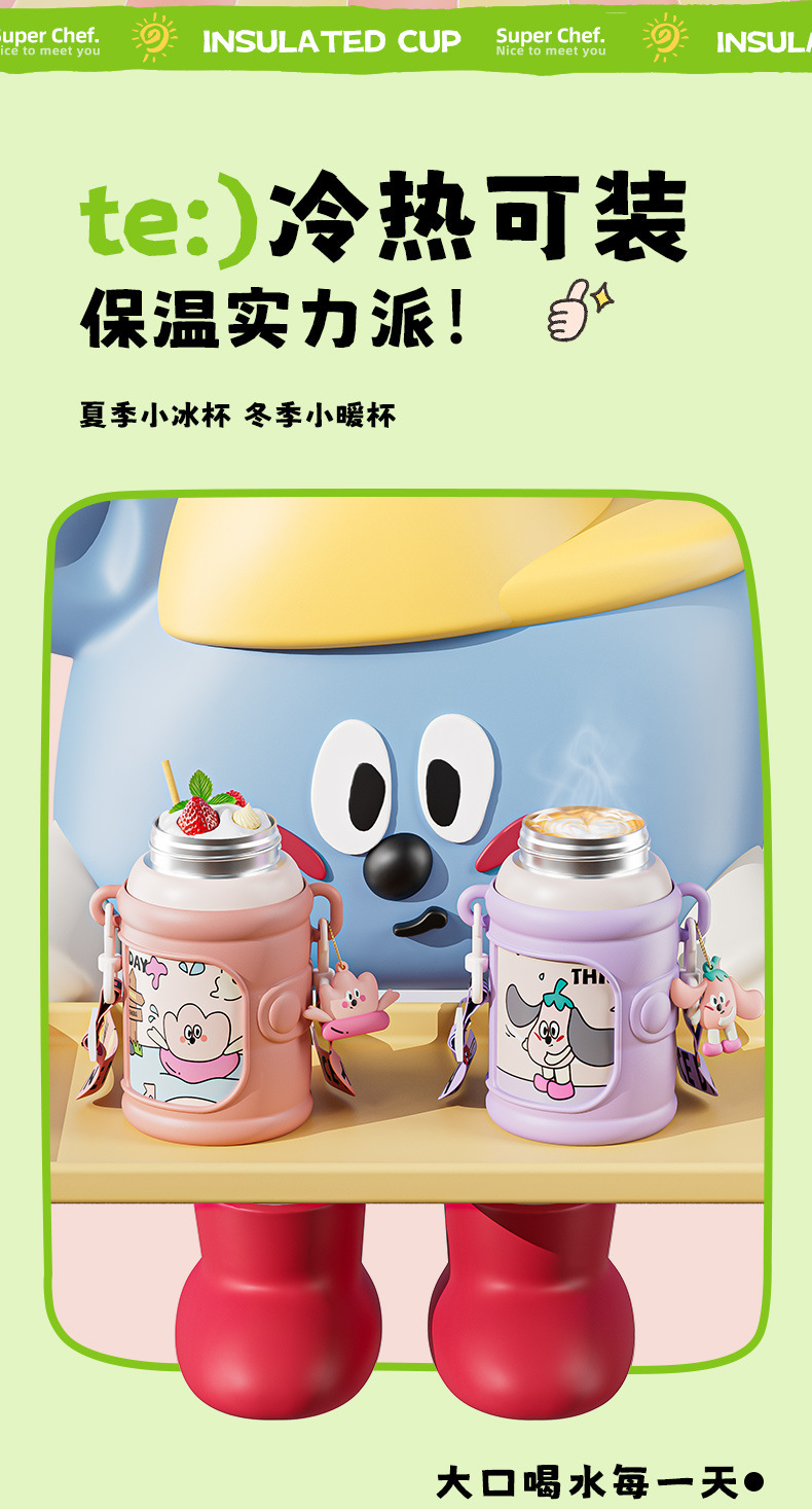 新款儿童壶316不锈钢双饮保温杯学生可爱防摔水杯卡通礼品水杯子