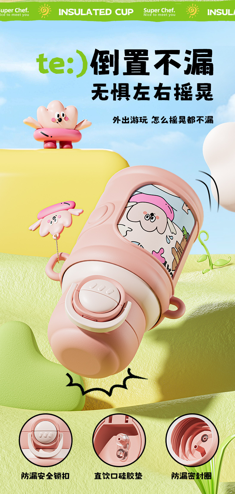 带提绳,弹跳杯,带吸管,带锁扣