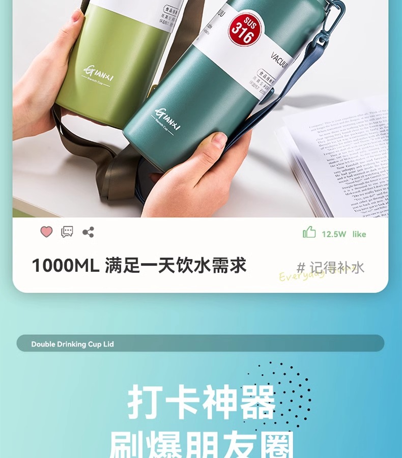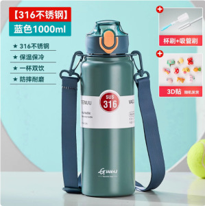 蓝色1000ml【杯刷+吸管刷+3D贴】