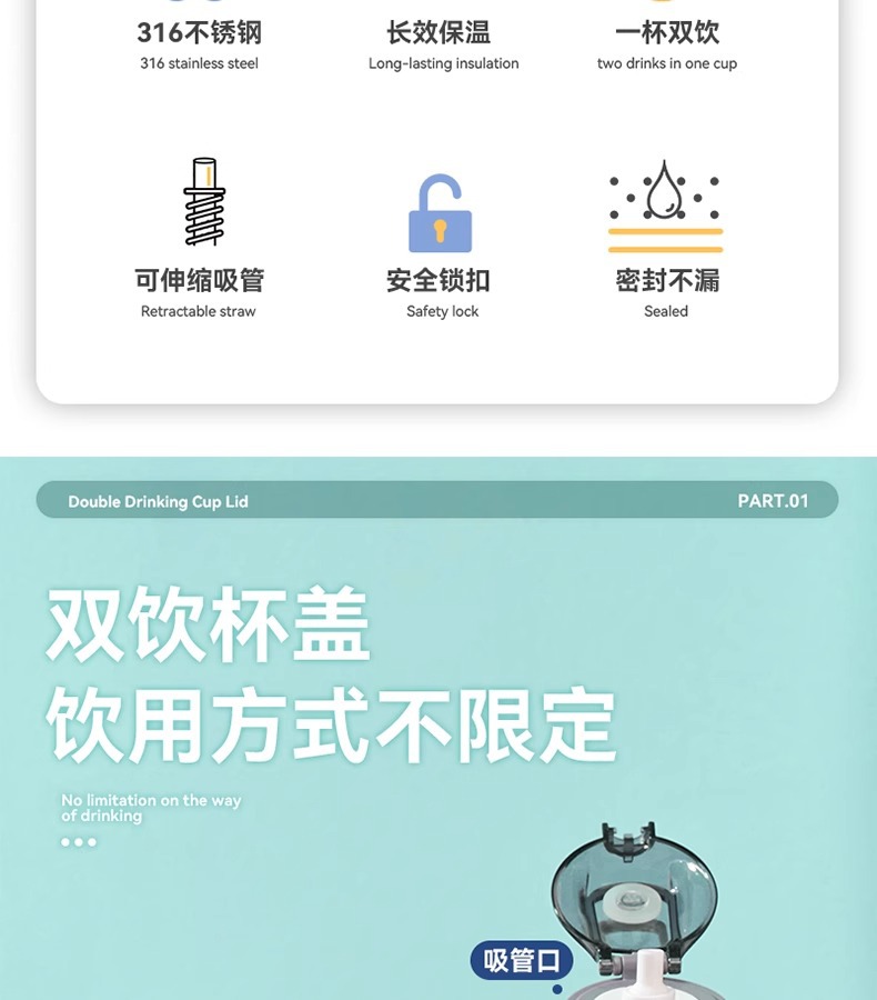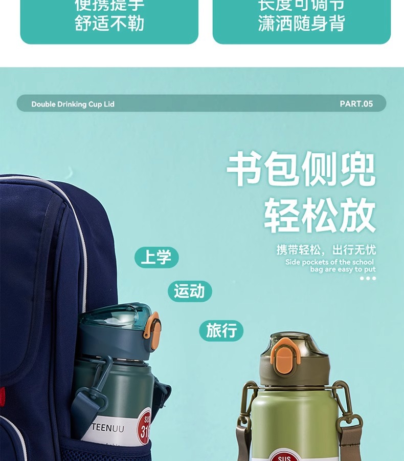 商品名称:儿童保温杯学生上学专用吸管杯子男女2024新款水壶316大容量水杯
