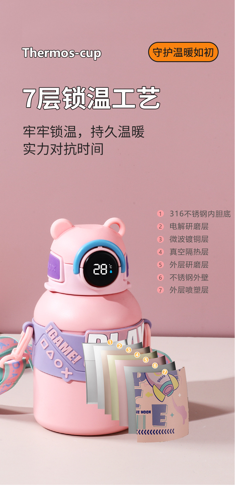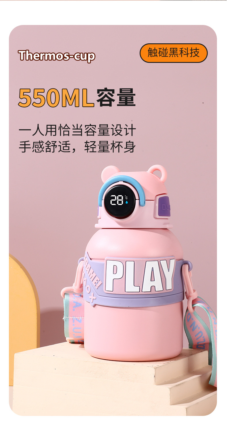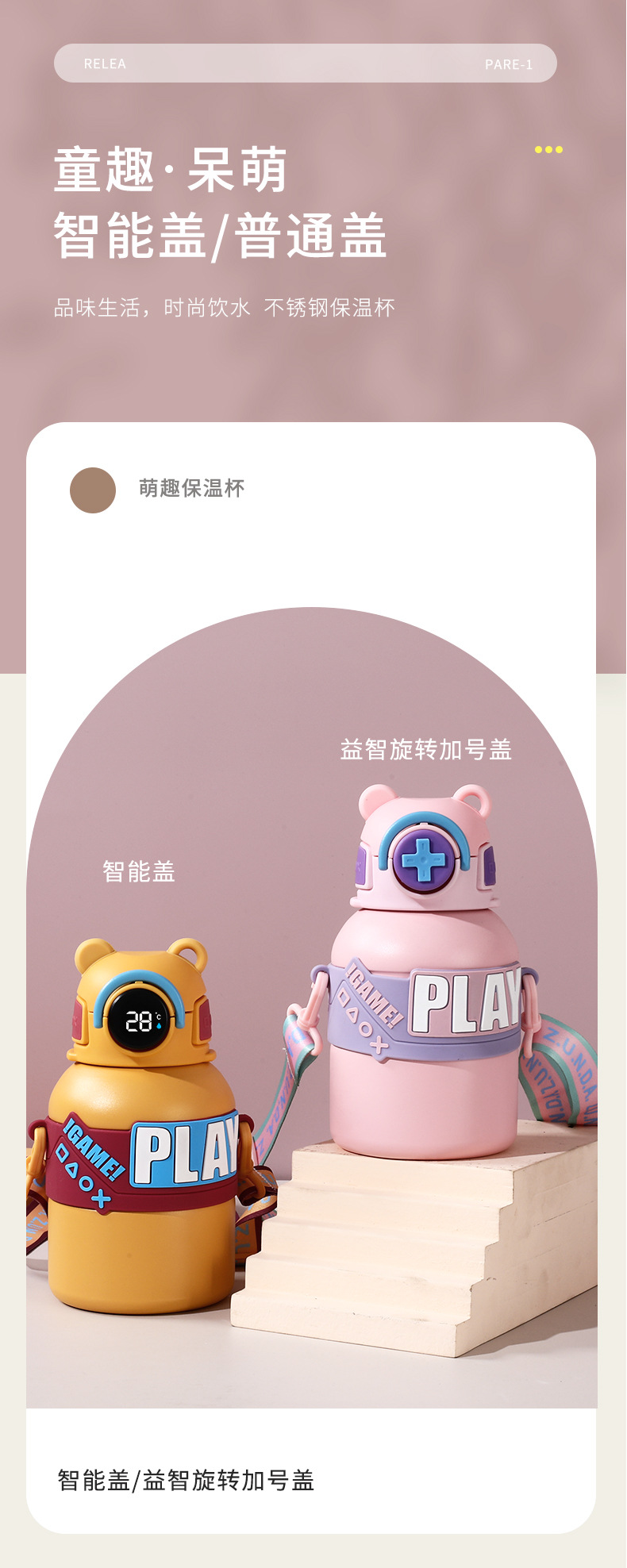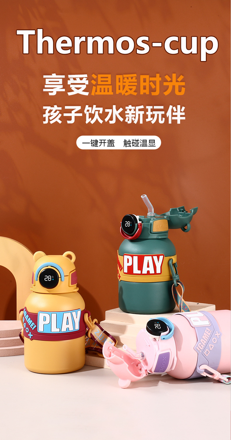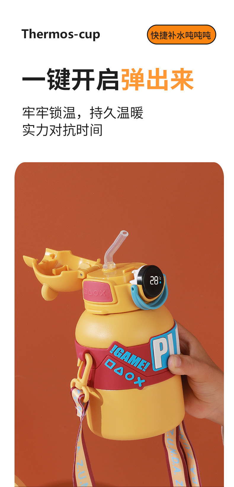 商品名称:智能316不锈钢儿童保温杯高颜值有背带学生水壶大容量吸管弹跳杯