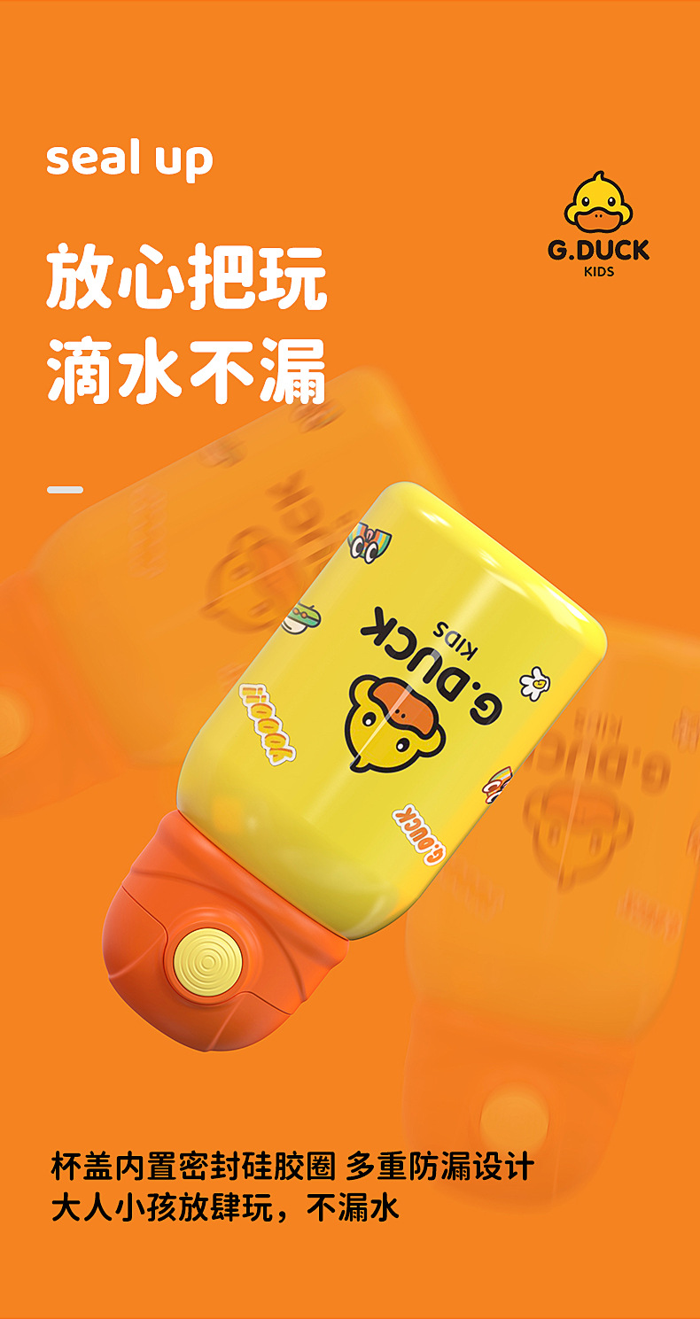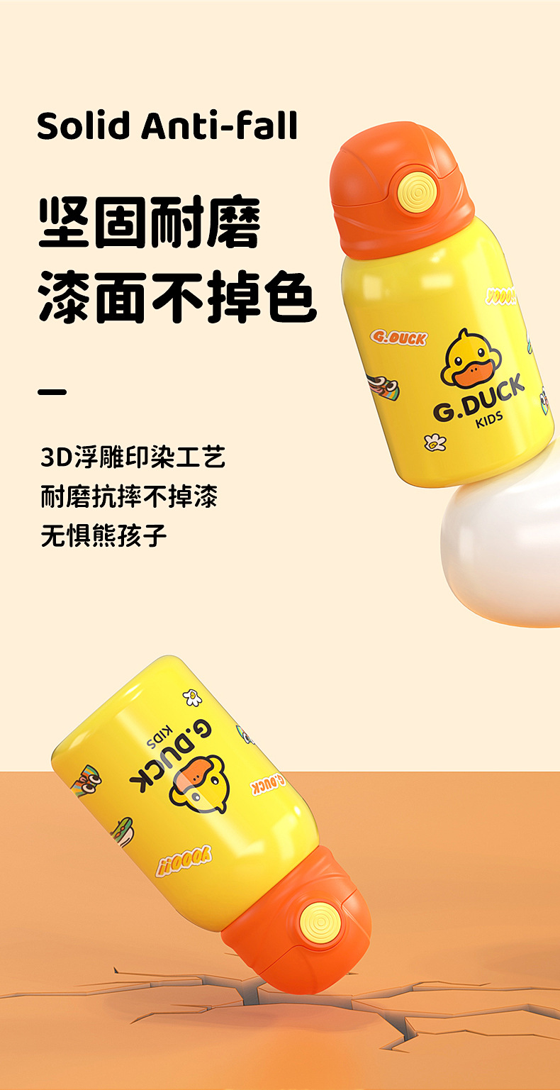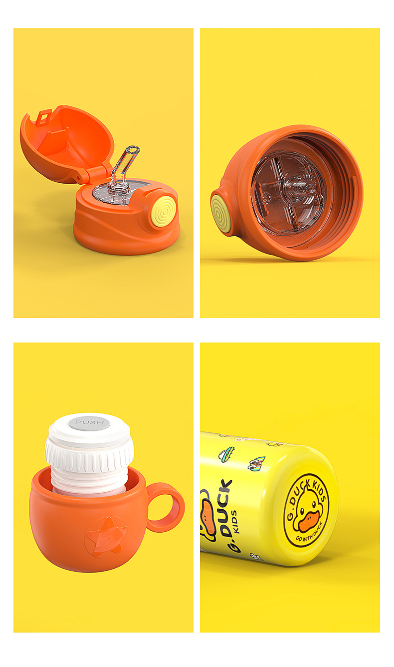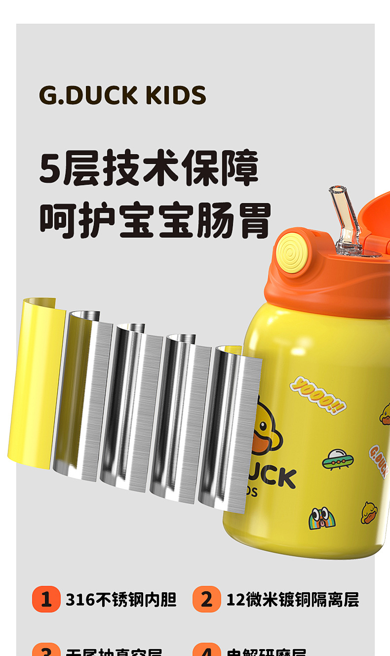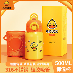 商品名称:G.DUCK小黄鸭316不锈钢儿童保温杯吸管杯一杯两盖水杯水壶保温壶