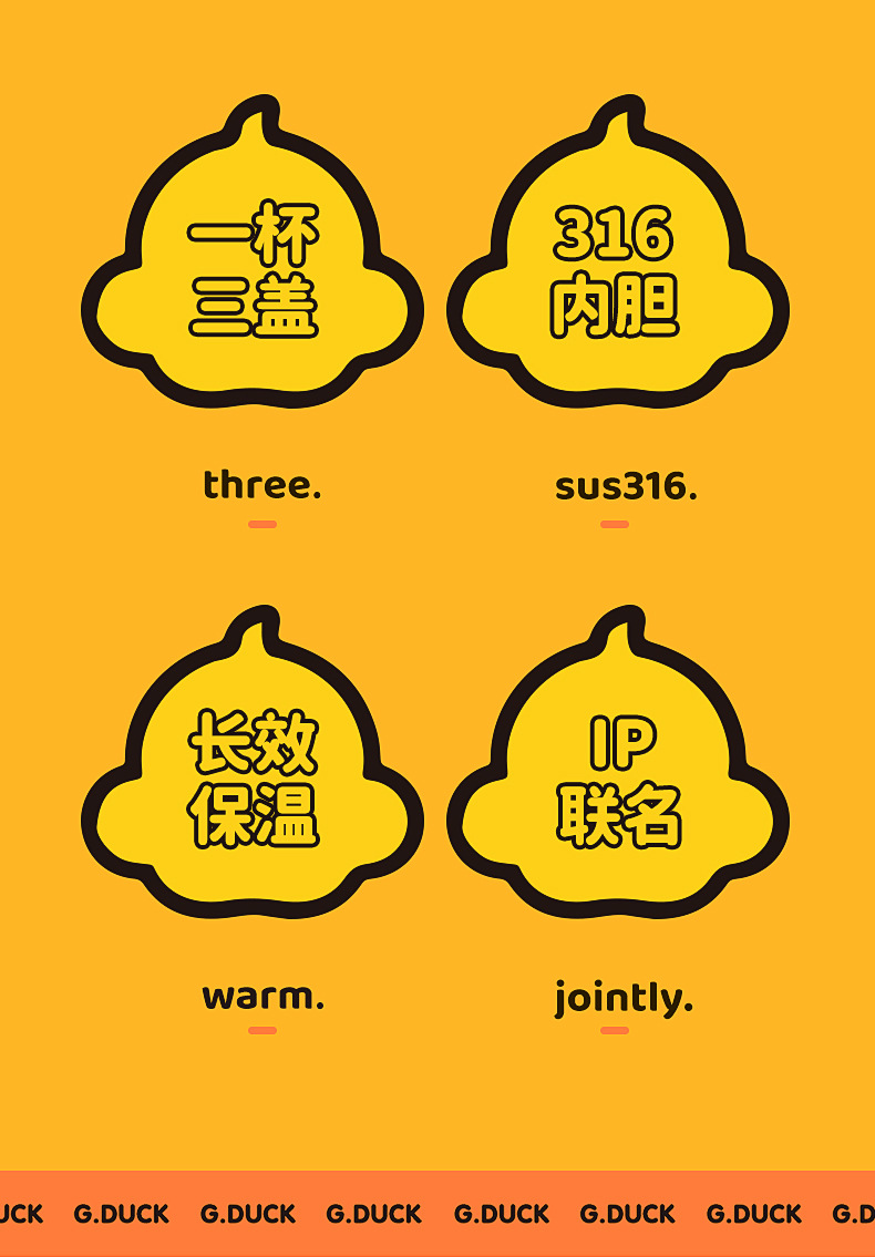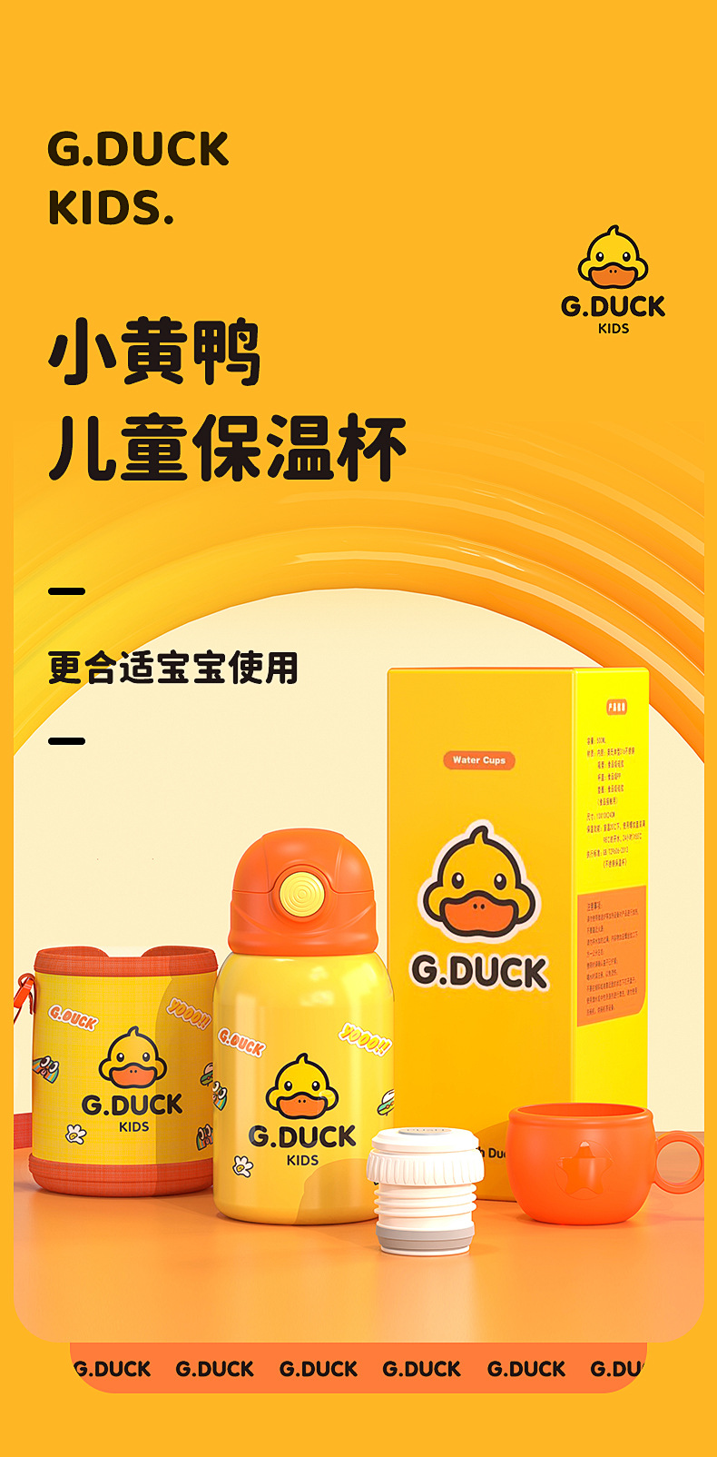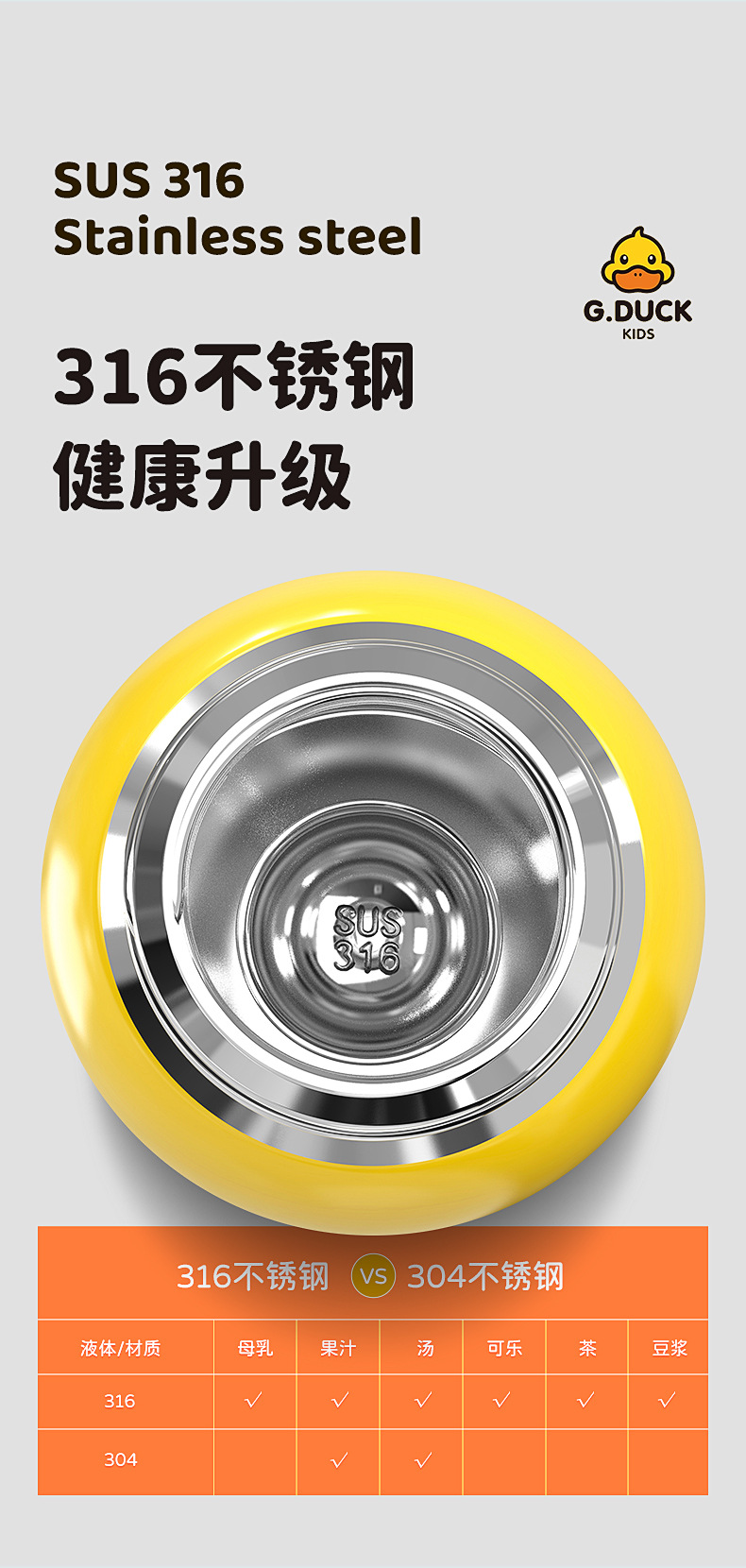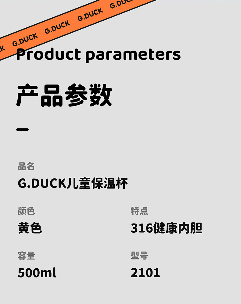 商品名称:G.DUCK小黄鸭316不锈钢儿童保温杯吸管杯一杯两盖水杯水壶保温壶