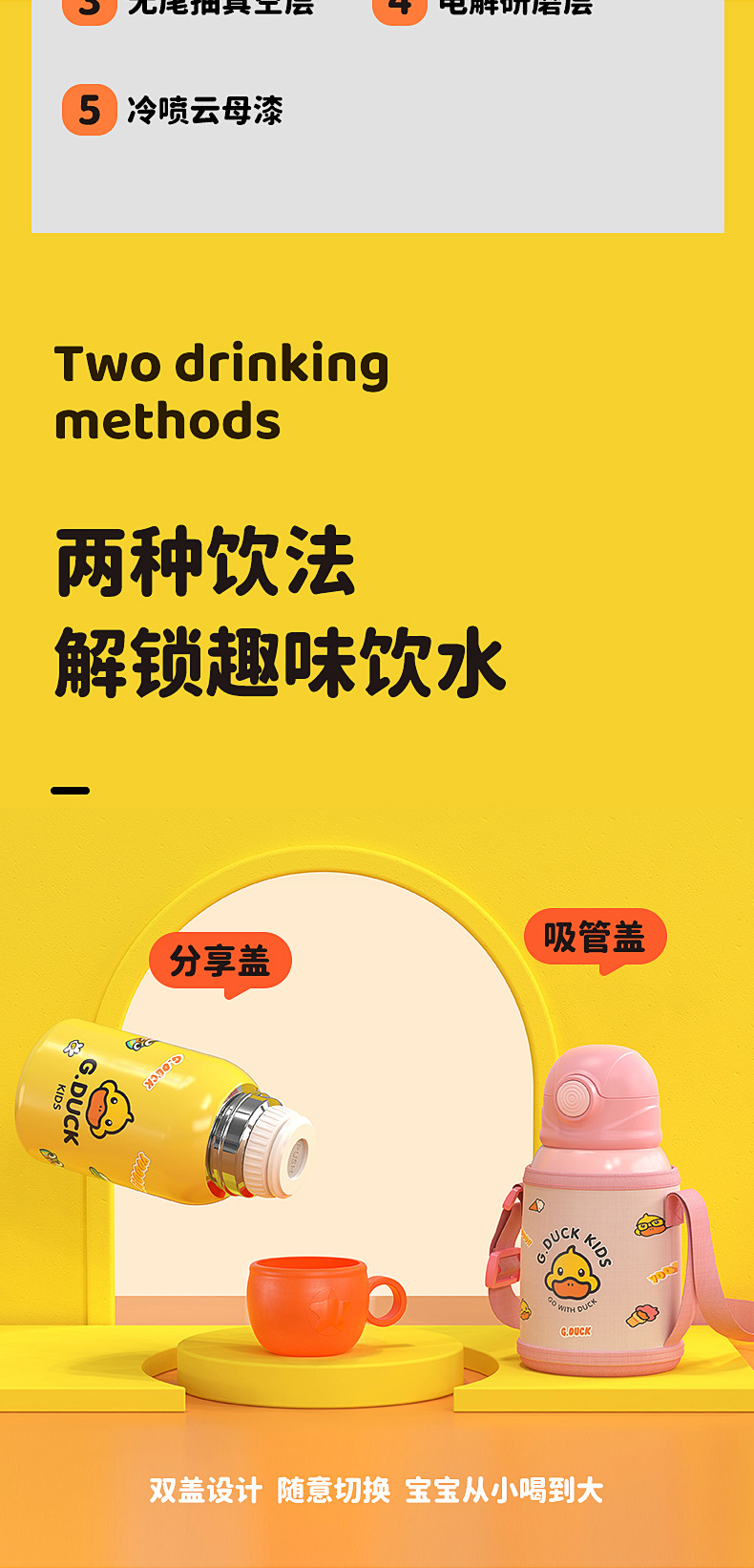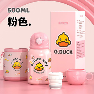 G.DUCK小黄鸭316不锈钢儿童保温杯吸管杯一杯两盖水杯水壶保温壶