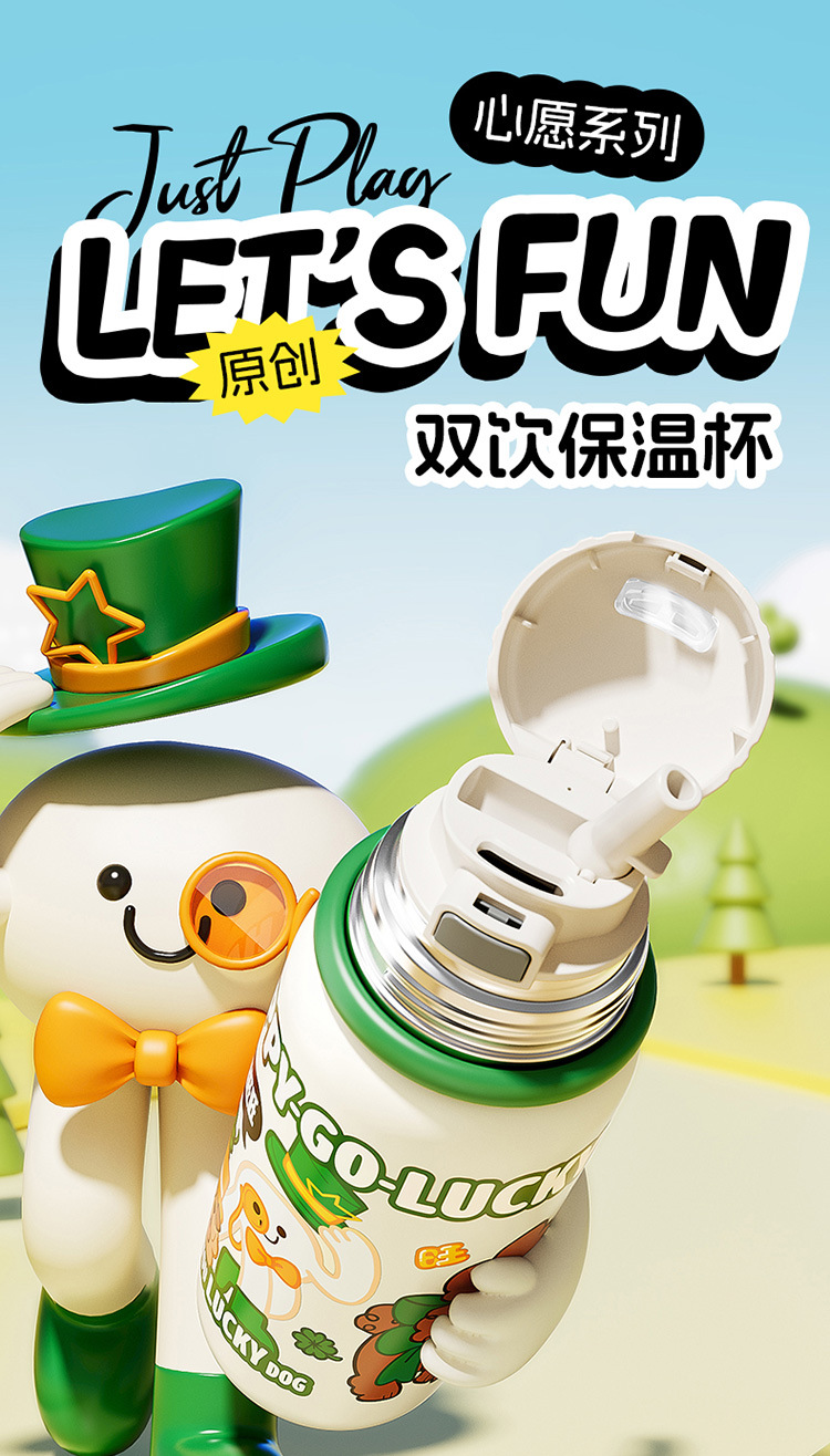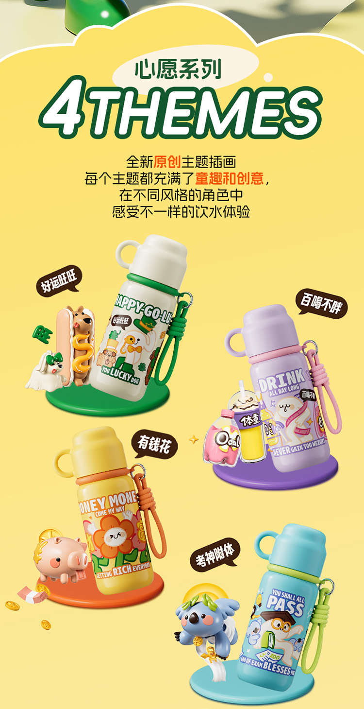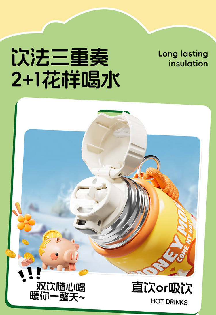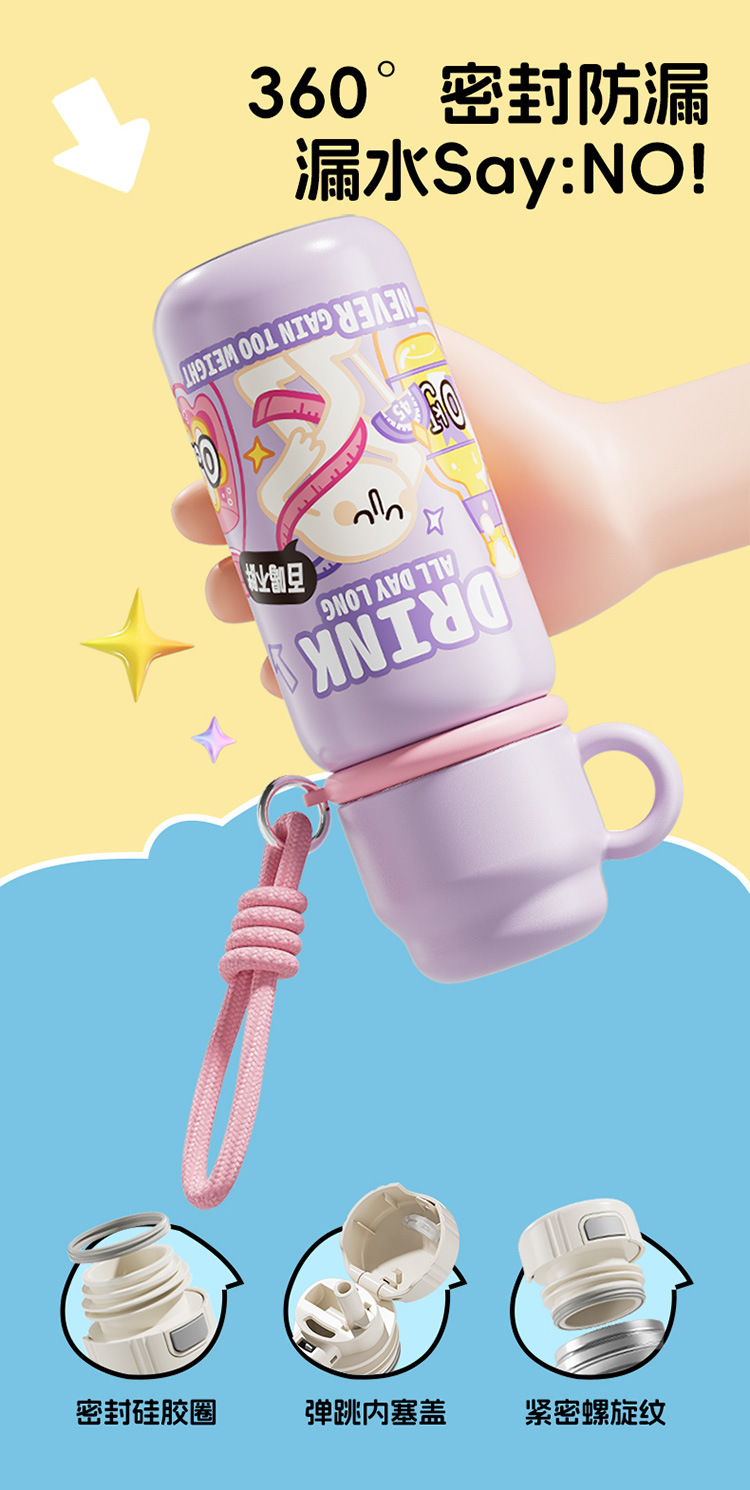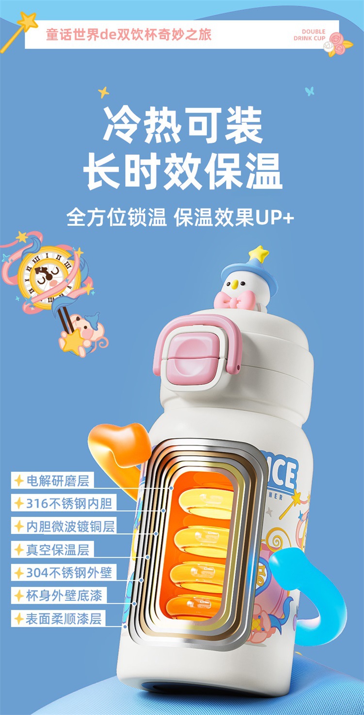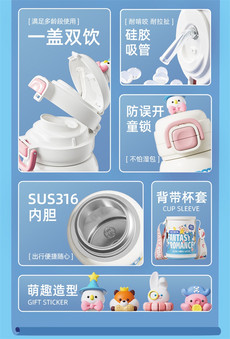 JEKO多饮保温杯316不锈钢食品级儿童学生男女高颜值卡通水壶水杯