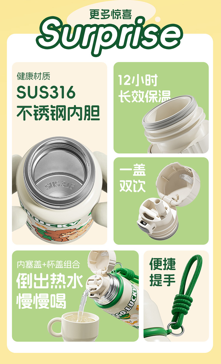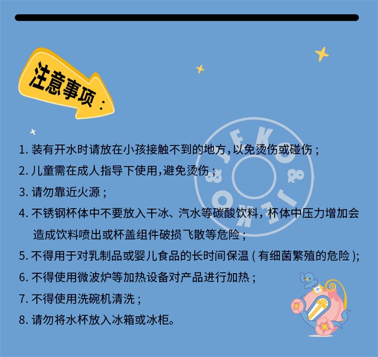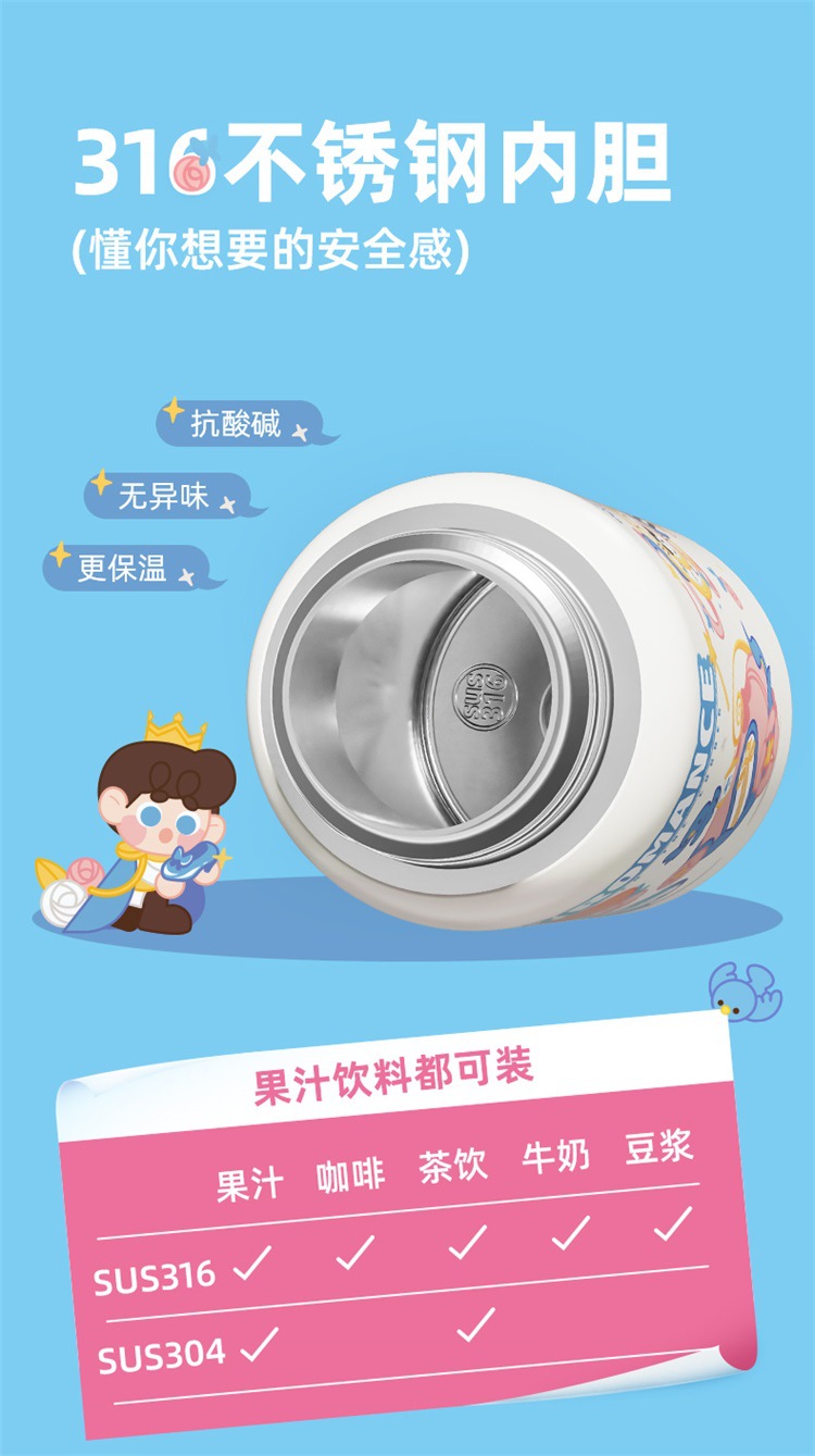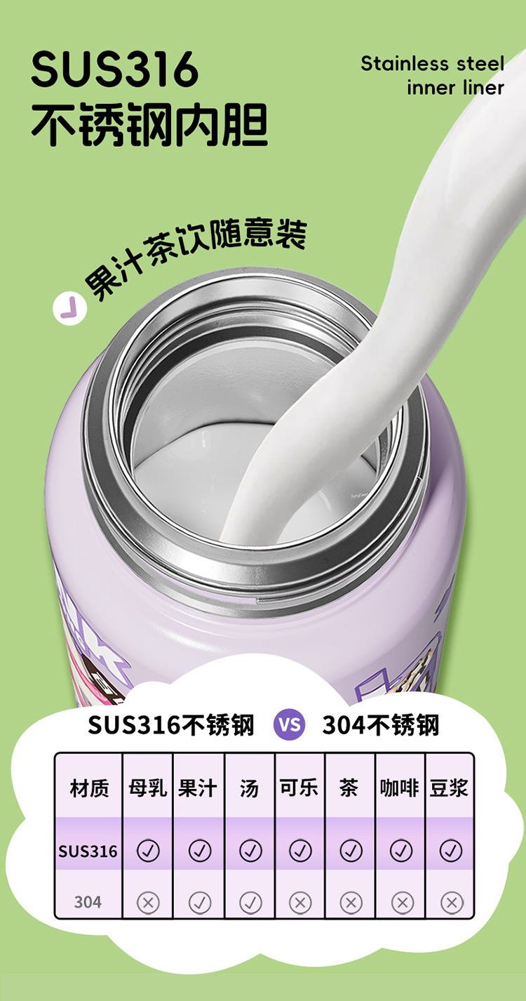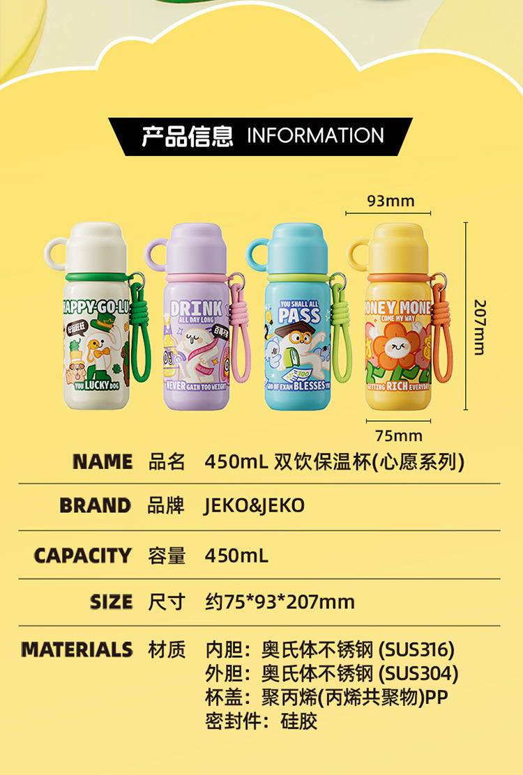 商品名称:JEKO多饮保温杯316不锈钢食品级儿童学生男女高颜值卡通水壶水杯