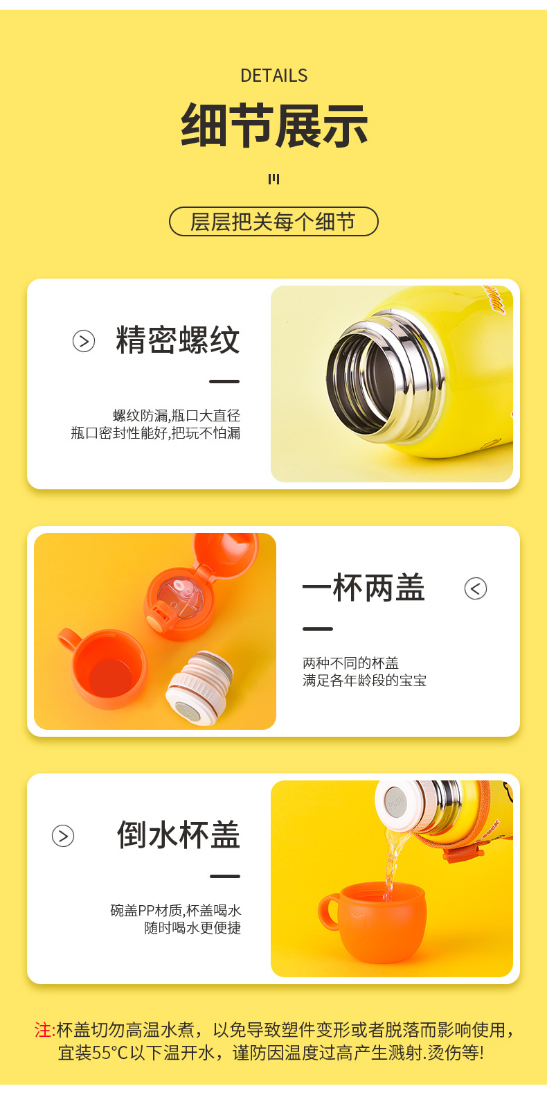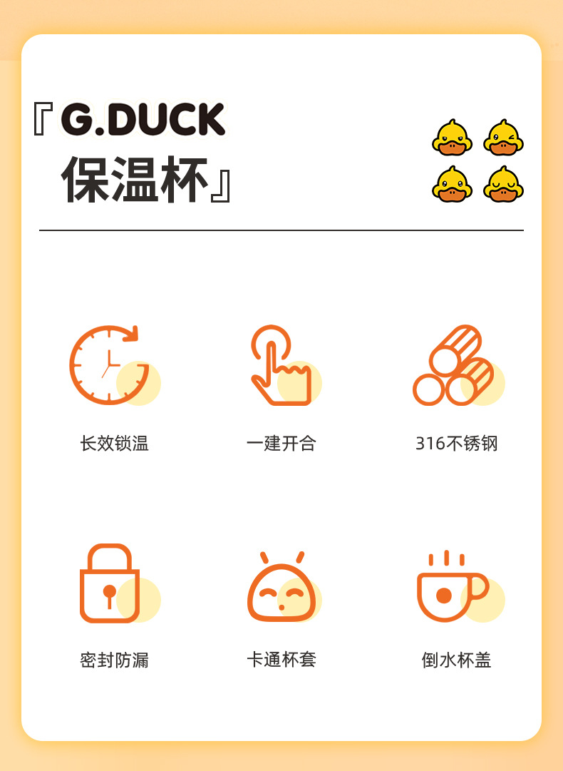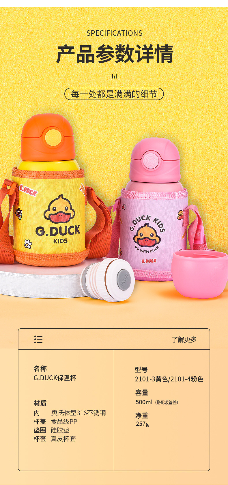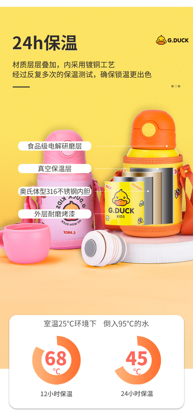 商品名称:G.DUCK kids小黄鸭儿童保温杯一杯双盖316不锈钢卡通水壶男女学生