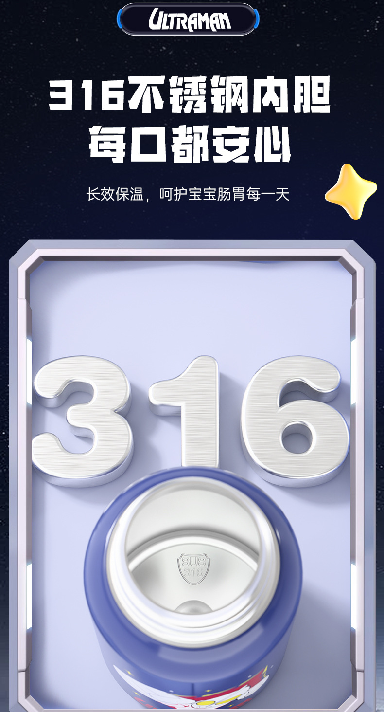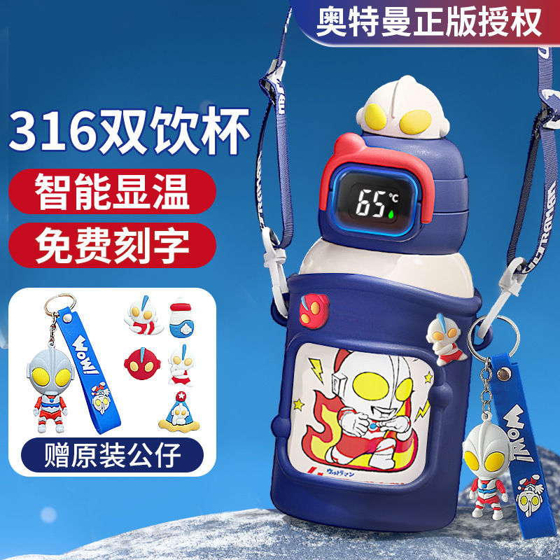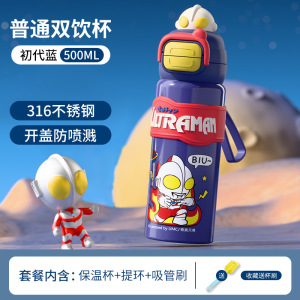 奥特曼儿童保温杯男孩上学专用水壶食品级316小学生宝宝吸管杯子