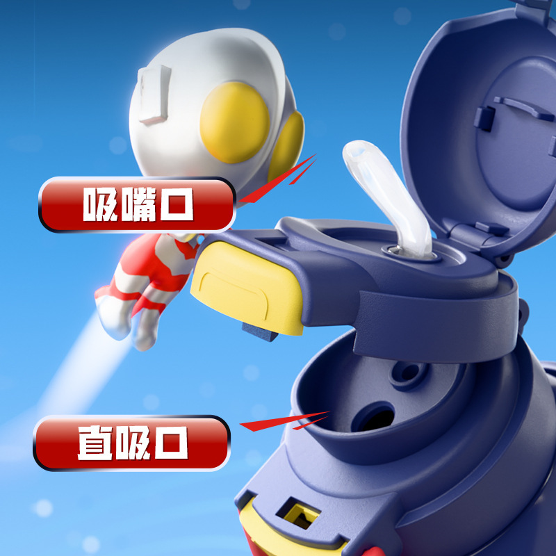 【一盖双饮】【正版奥特曼】蓝色500ml+提环送杯刷+吸管刷