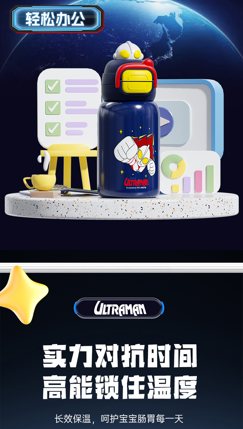 商品名称:奥特曼儿童保温杯男孩上学专用水壶食品级316小学生宝宝吸管杯子