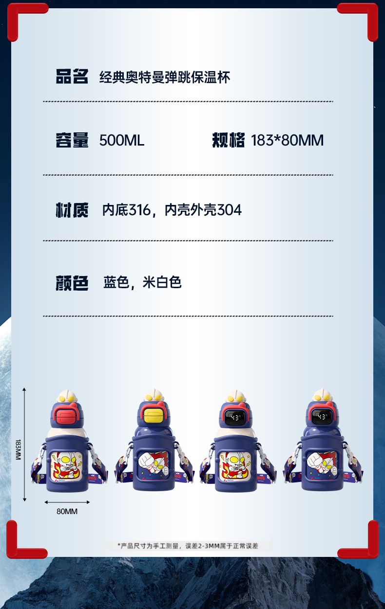 【智能温显】【正版奥特曼】白色500ml送奥特曼挂件+立体贴纸+杯套