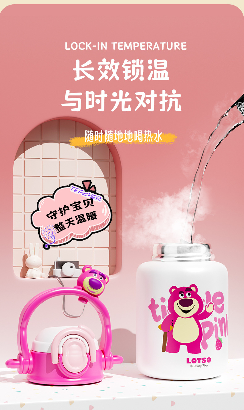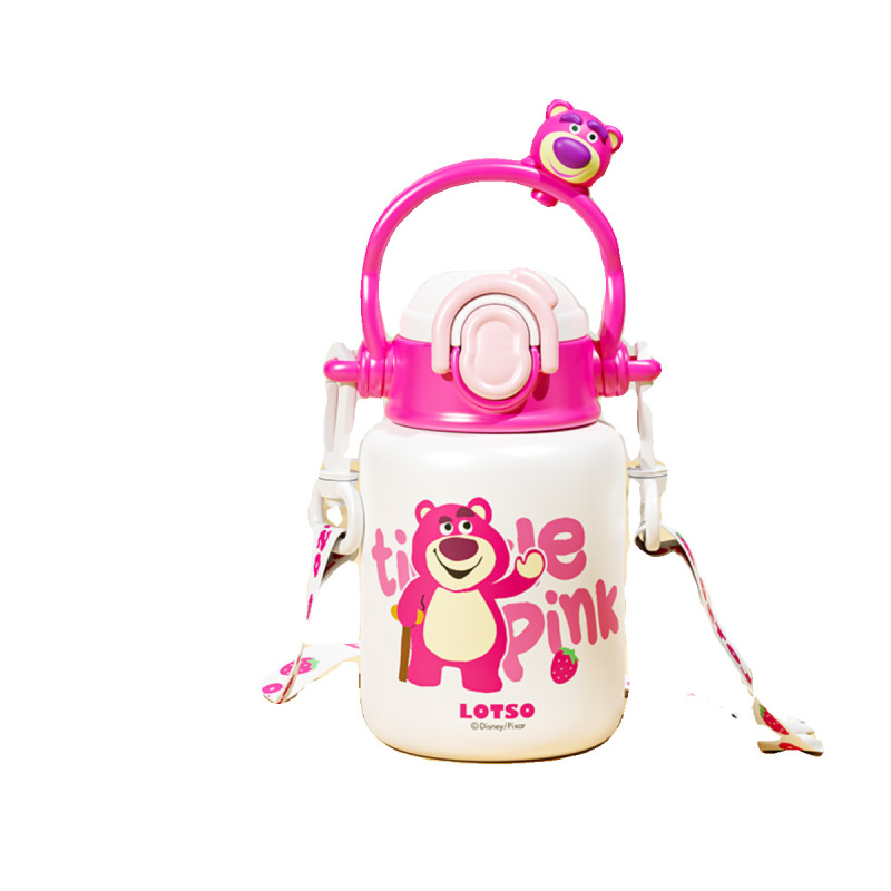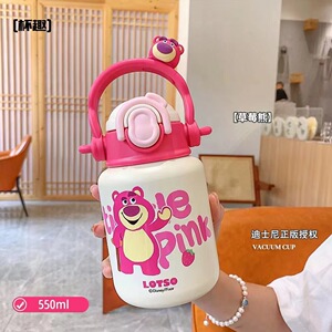550ML 粉色草莓熊【吸管盖+提手背带】6276