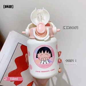 550ML 粉色小丸子【吸管盖+提手背带】6276