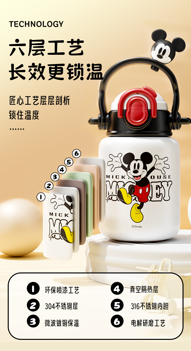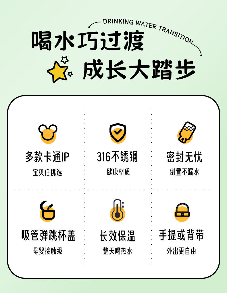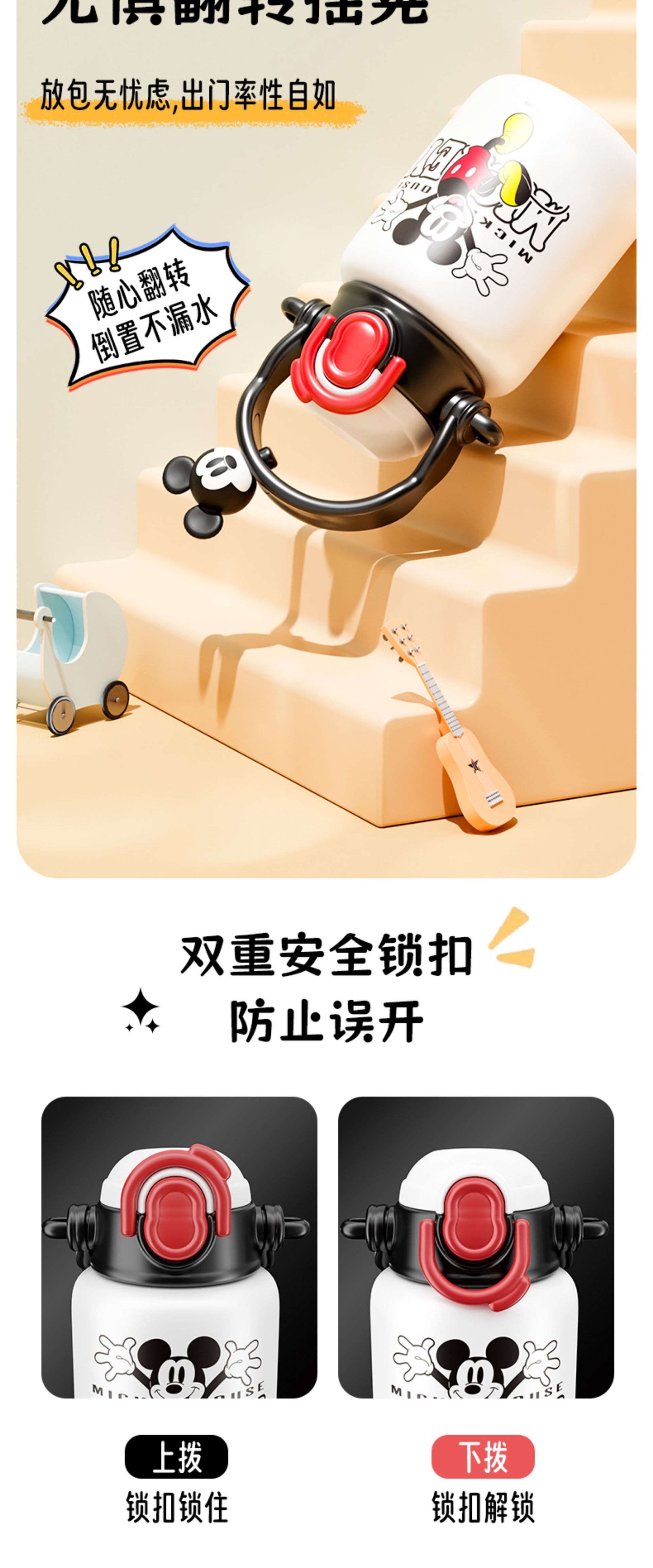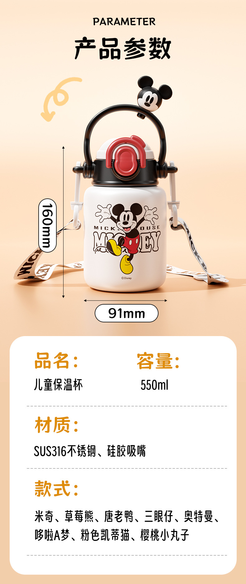 商品名称:迪士尼儿童保温杯带吸管食品级316不锈钢学生上学用可爱便携水壶