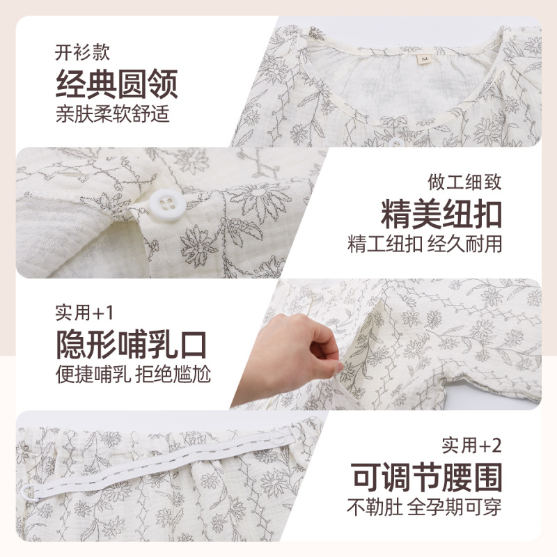 商品名称:喜月A类棉纱月子服夏季纯棉 孕期产后哺乳喂奶吸汗孕妇睡衣女