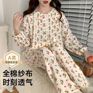 喜月A类棉纱月子服夏季纯棉 孕期产后哺乳喂奶吸汗孕妇睡衣女