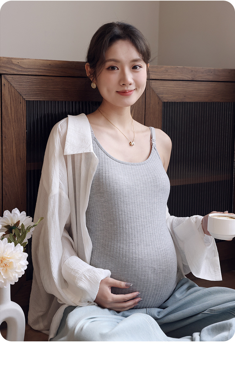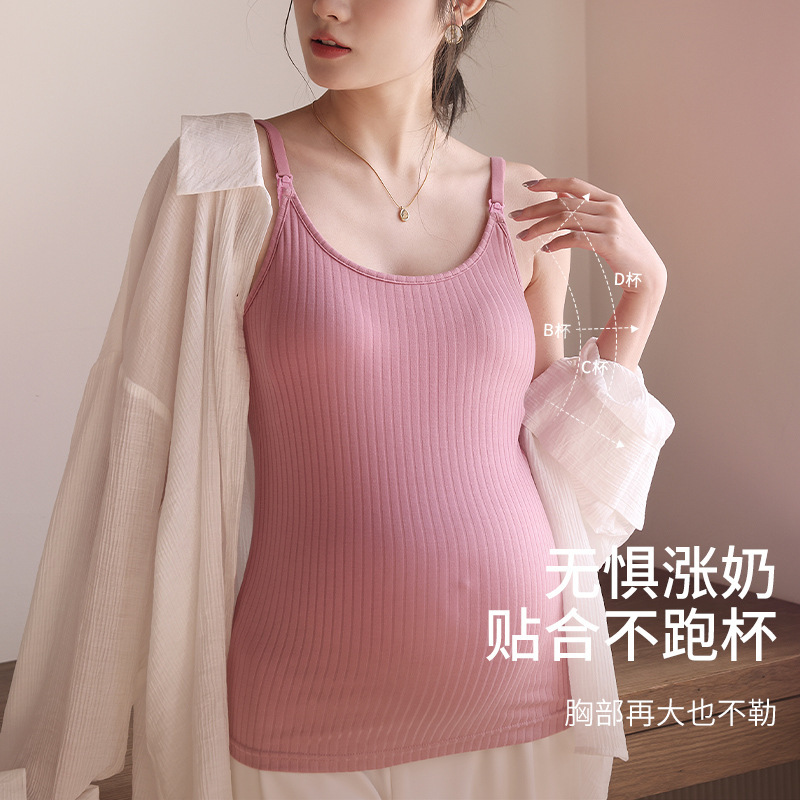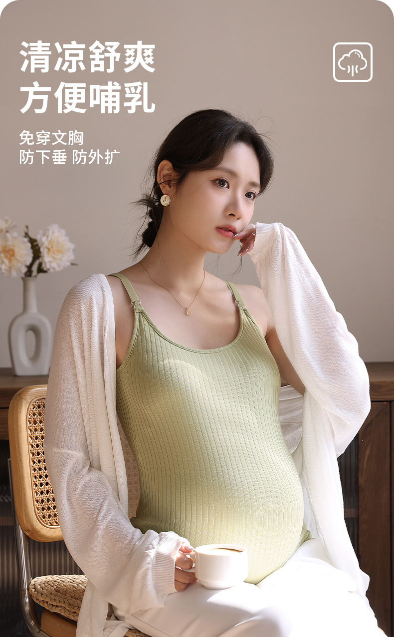 哺乳吊带背心夏季薄款免穿文胸孕妇产后喂奶外穿打底上衣t恤内搭