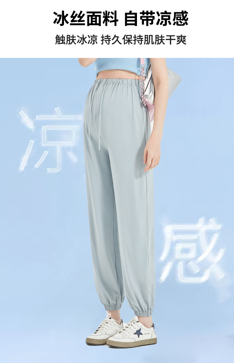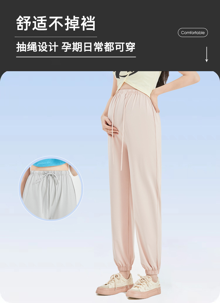 商品名称:孕妇裤夏季薄款冰感防晒休闲束脚裤抽绳设计无托腹宽松时尚孕妇装