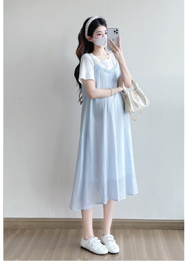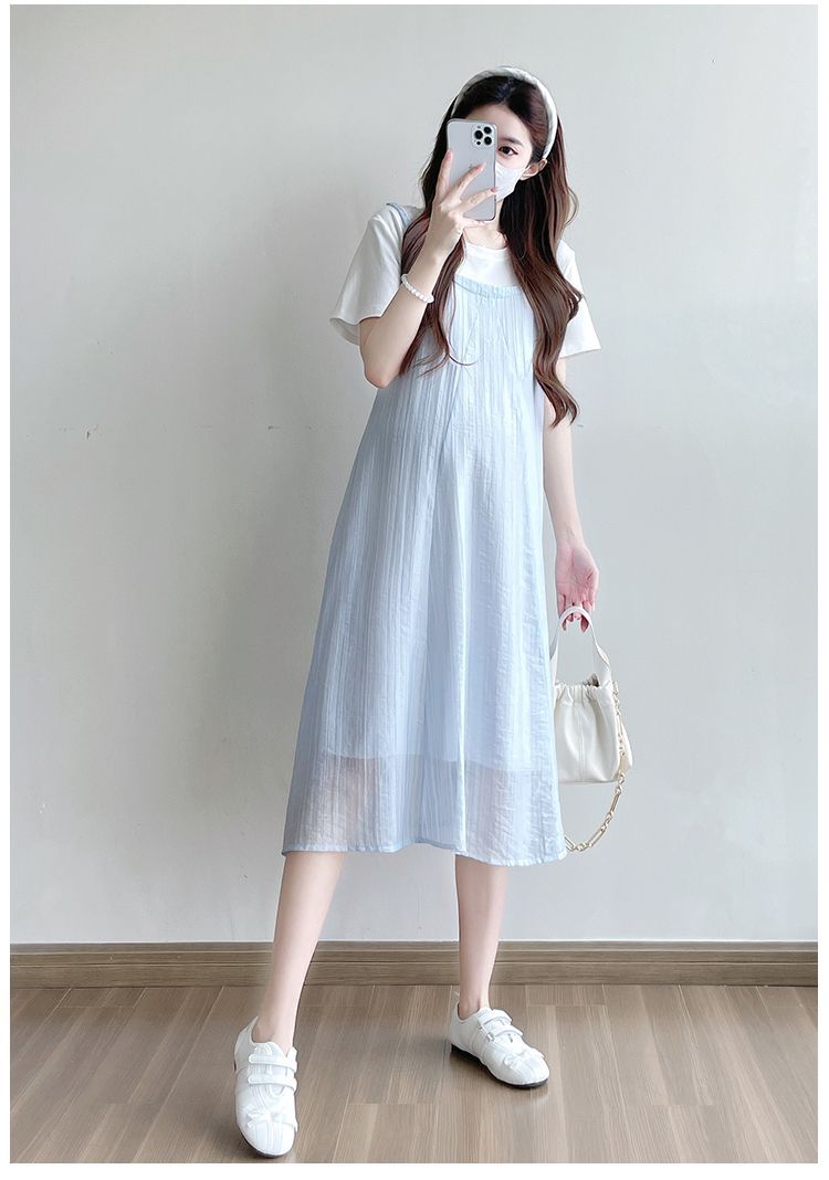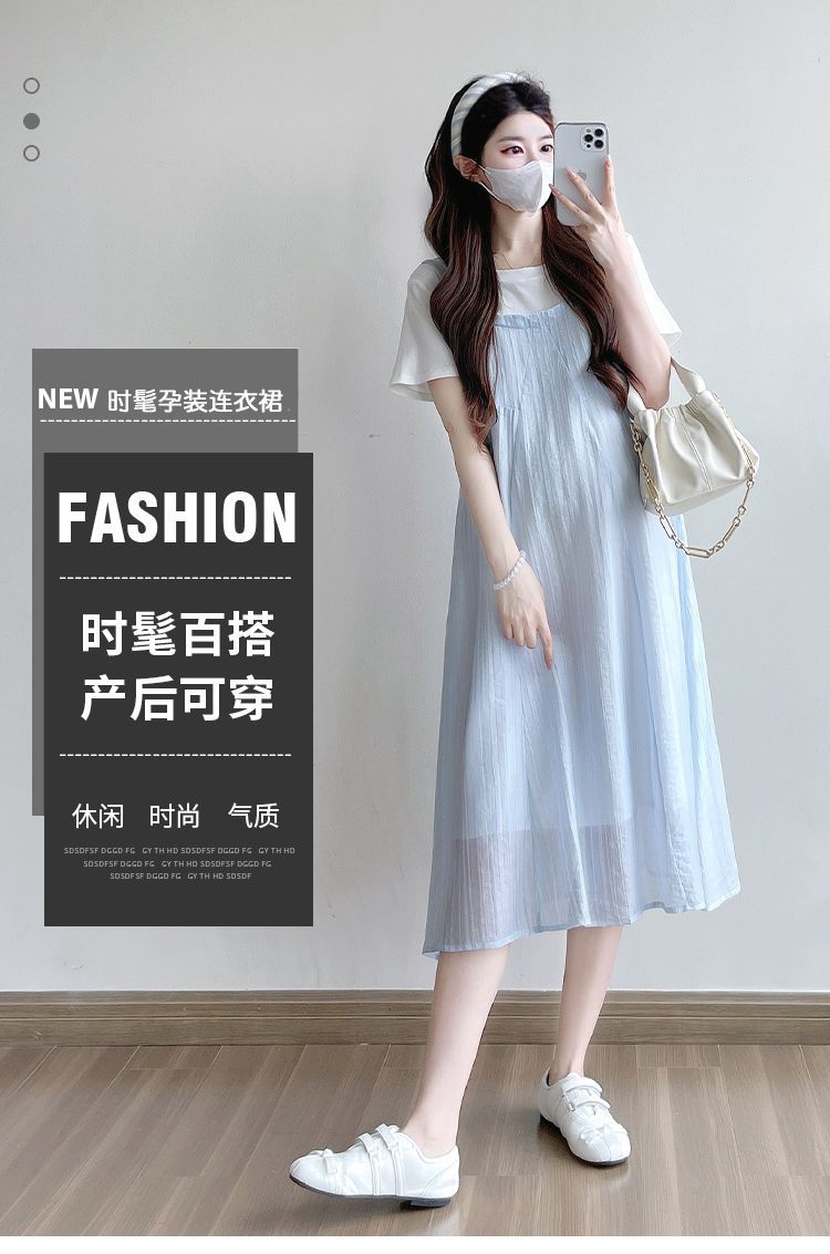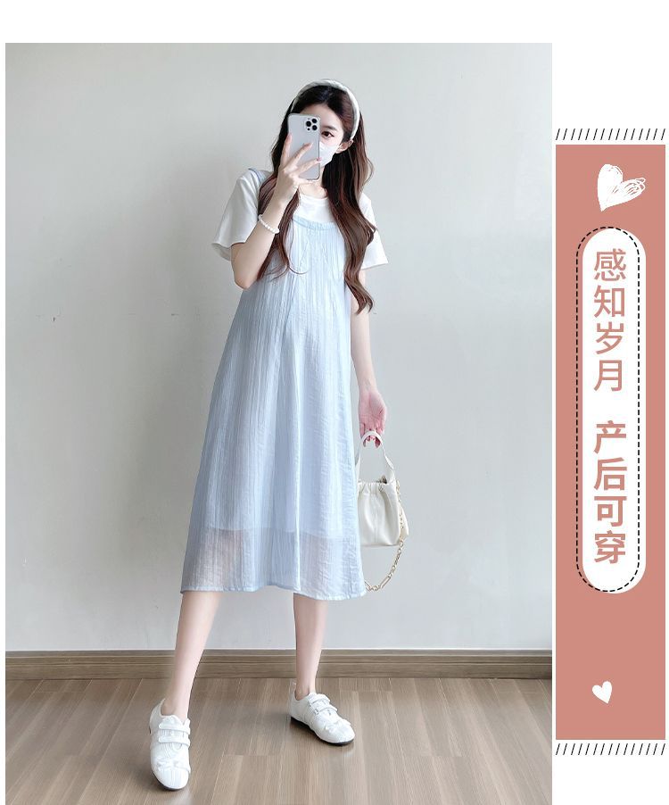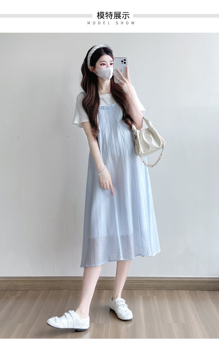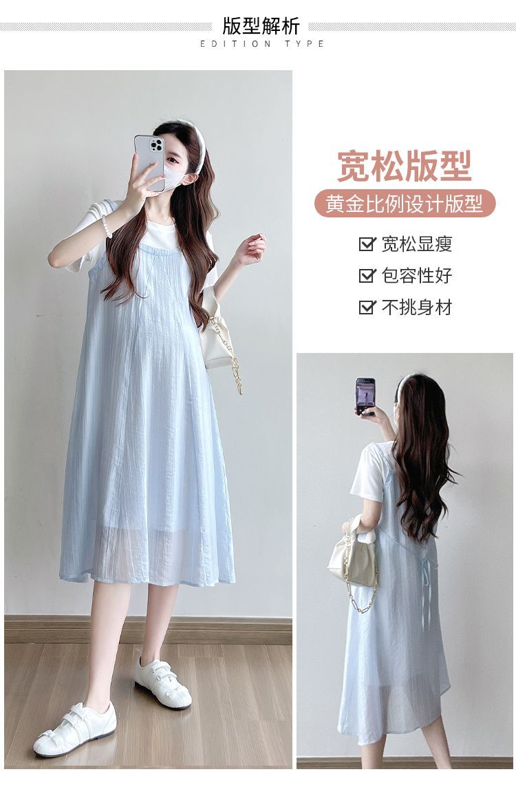 商品名称:孕妇连衣裙2025新款夏季韩版时尚宽松显瘦洋气时髦假两件吊带裙