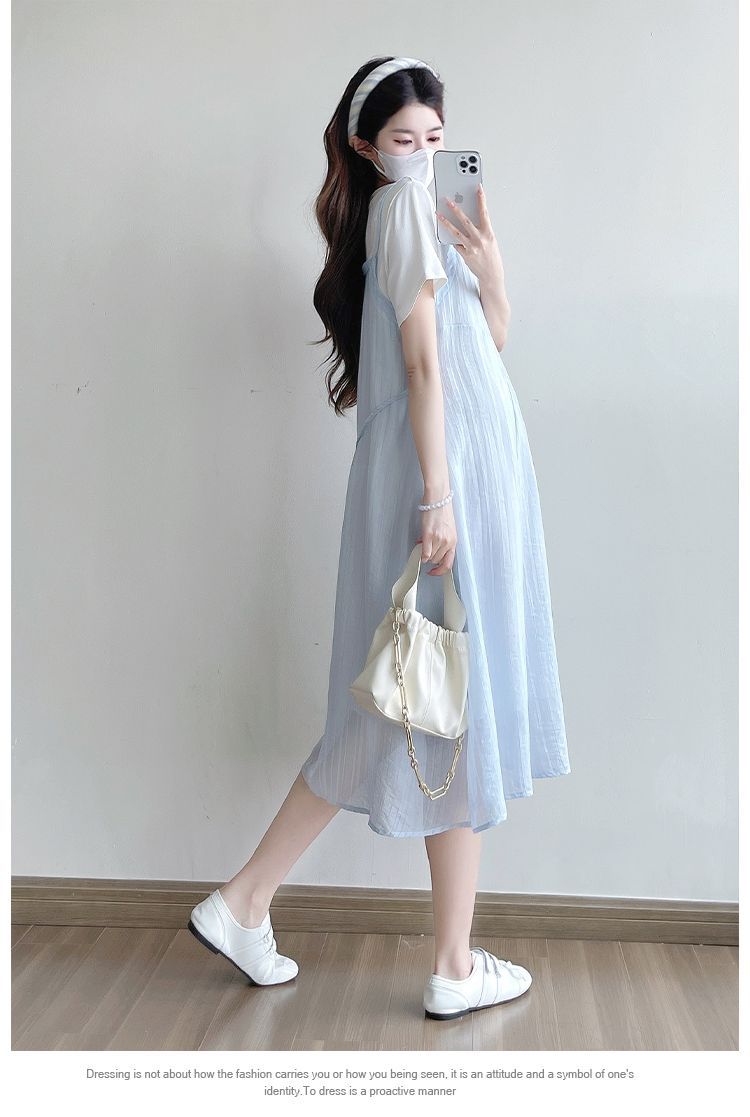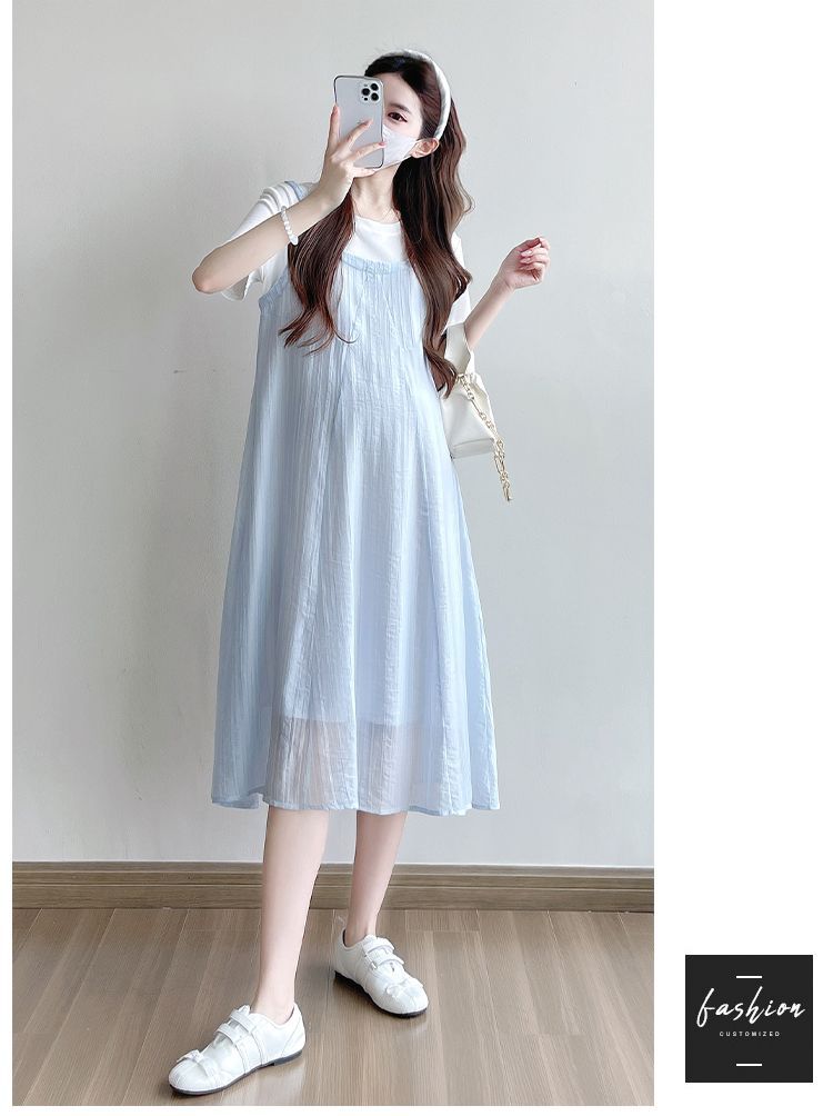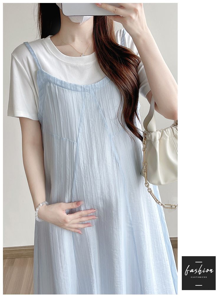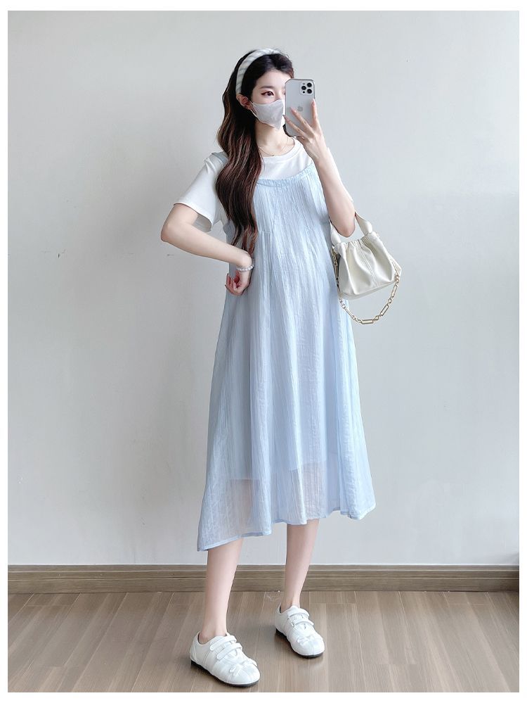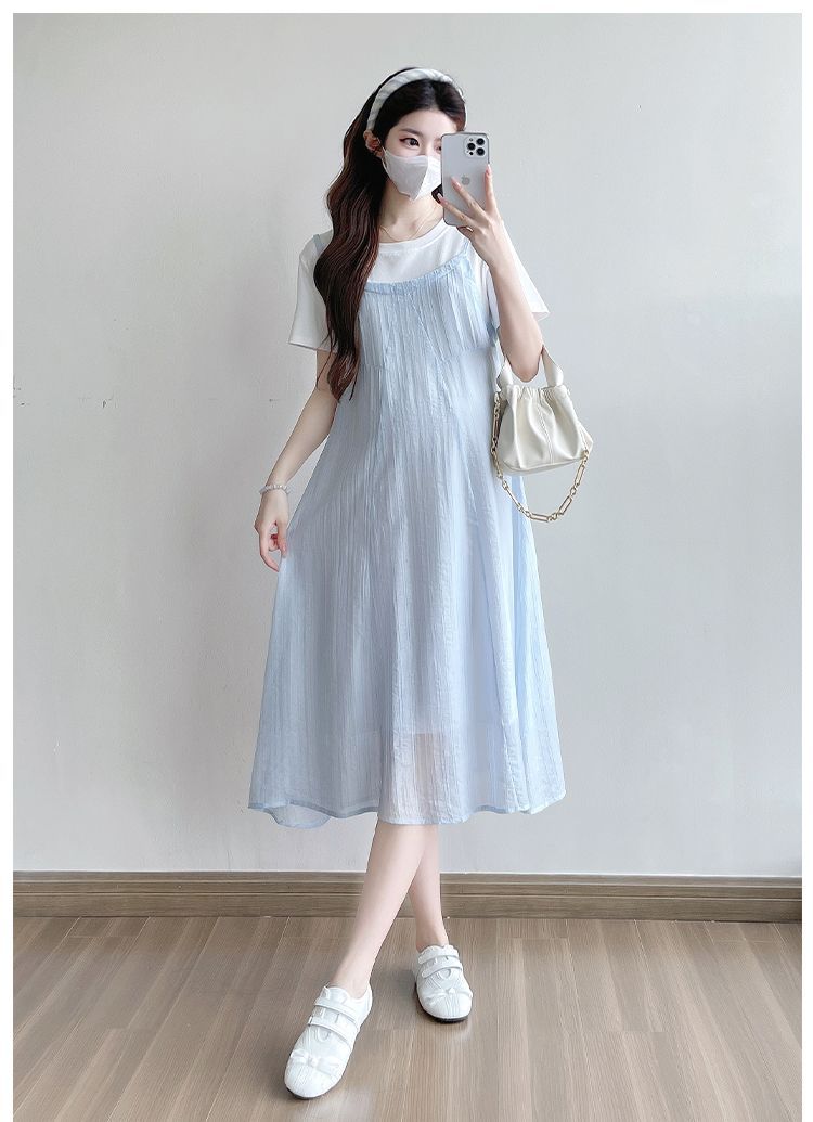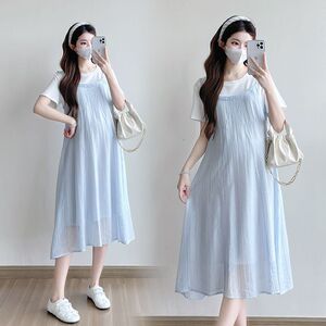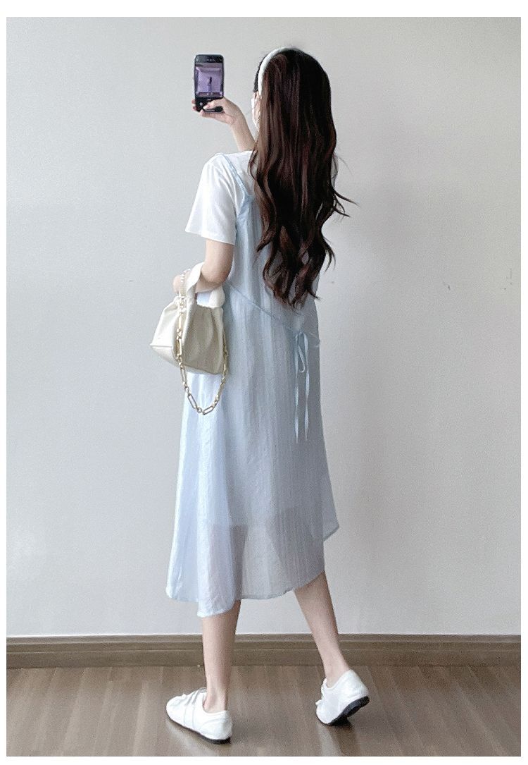 商品名称:孕妇连衣裙2025新款夏季韩版时尚宽松显瘦洋气时髦假两件吊带裙