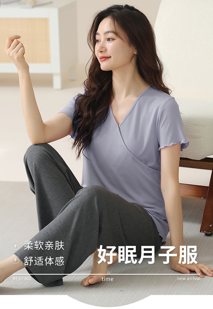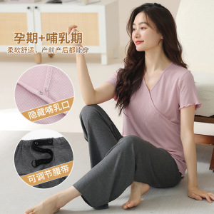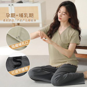 月子服睡衣女夏季莫代尔孕妇产后喂奶哺乳装短袖夏天可外穿家居服