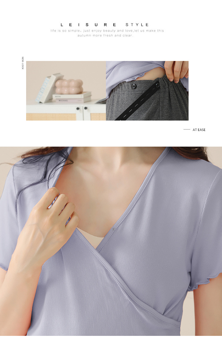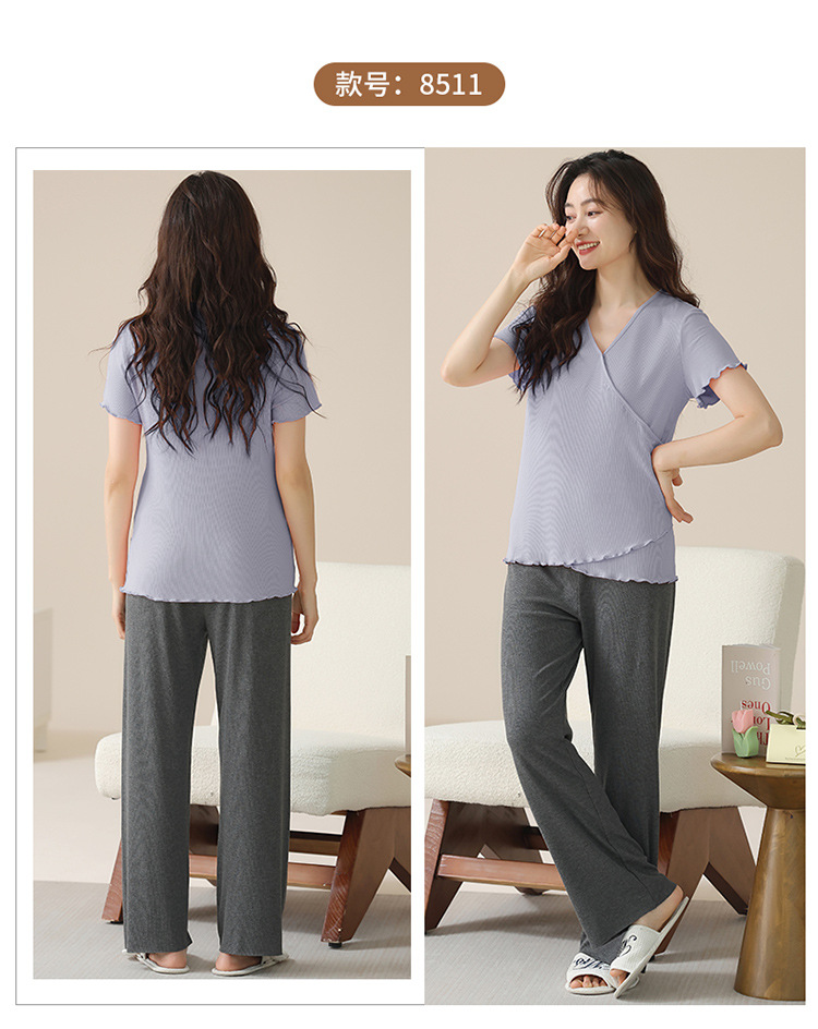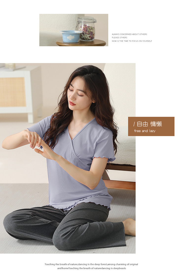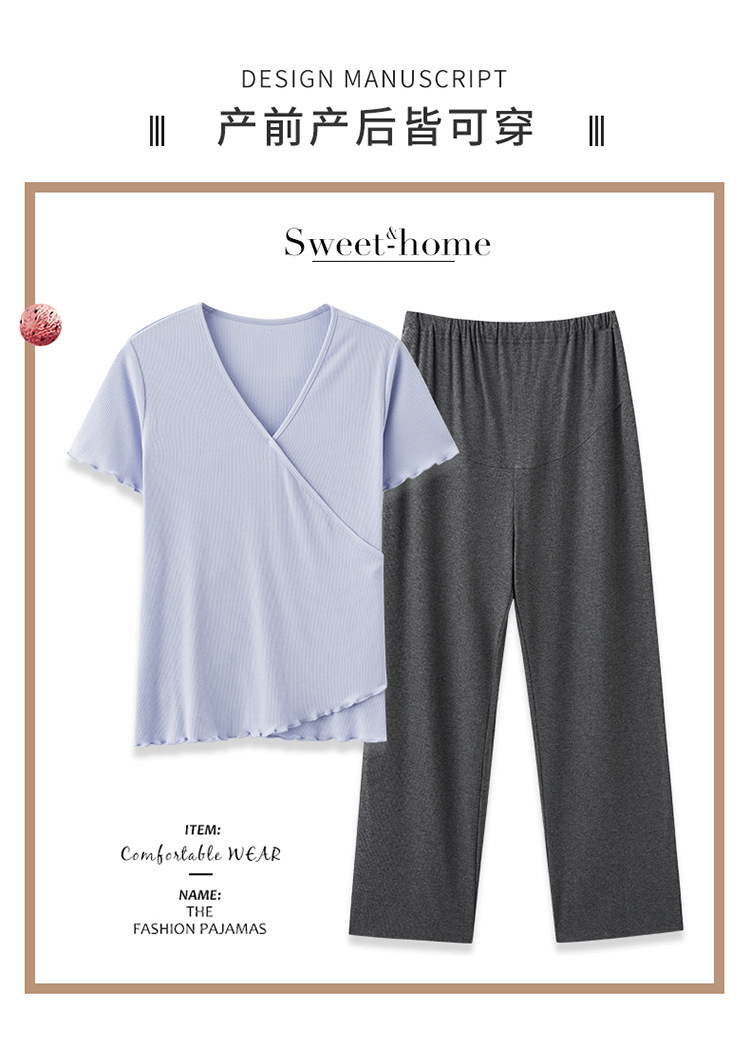商品名称:月子服睡衣女夏季莫代尔孕妇产后喂奶哺乳装短袖夏天可外穿家居服