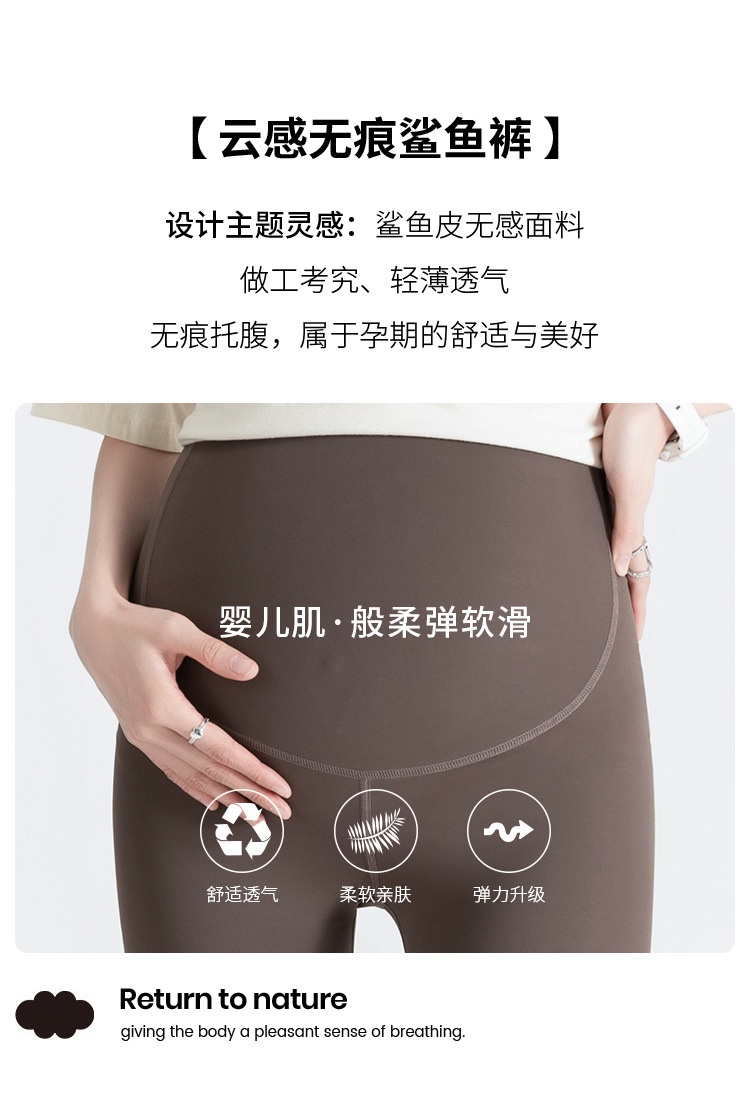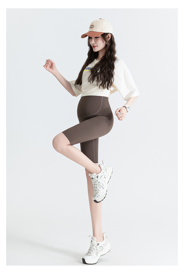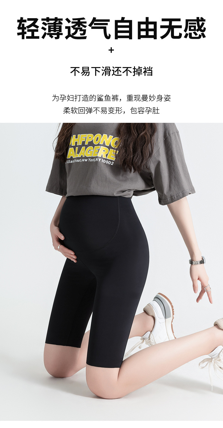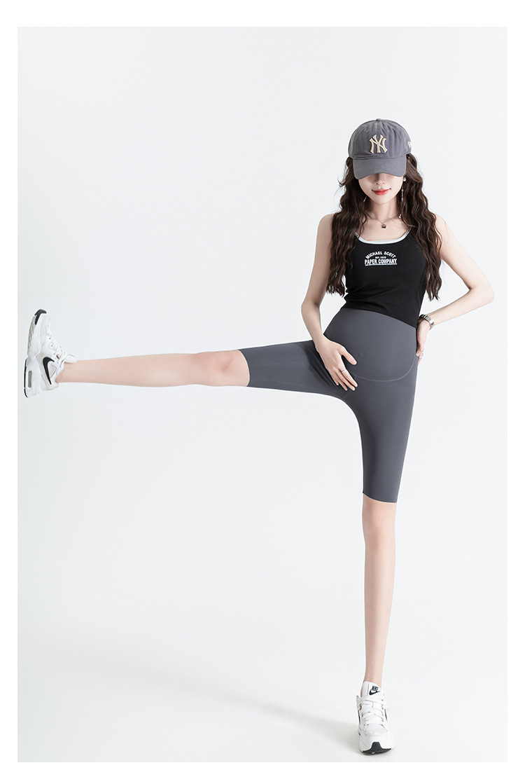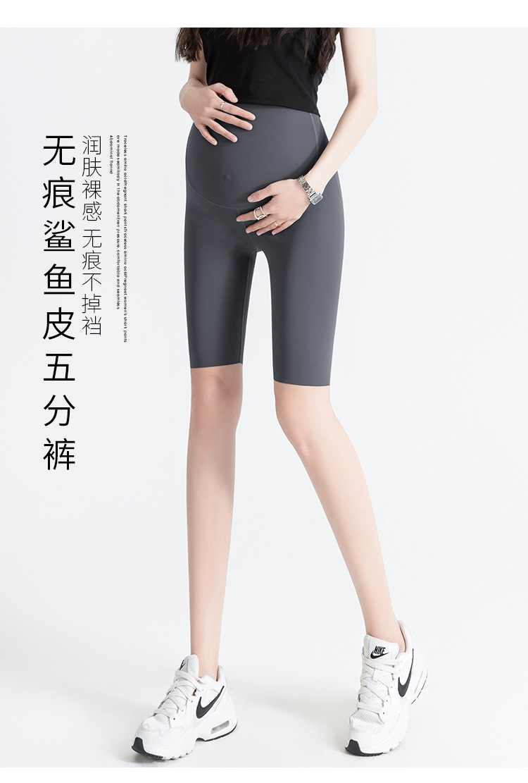商品名称:无痕孕妇装五分鲨鱼短裤弹力运动裤紧身高腰速干深灰烟灰色瑜伽裤