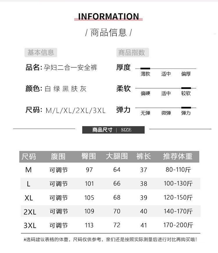 商品名称:孕妇安全裤防走光夏季大码孕期打底裤免穿内裤二合一冰丝短裤夏装
