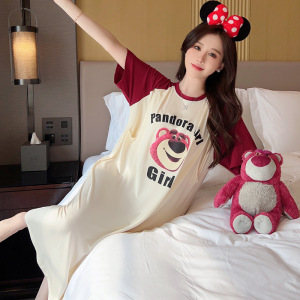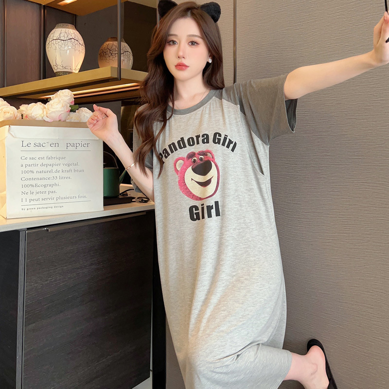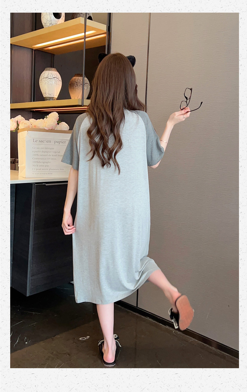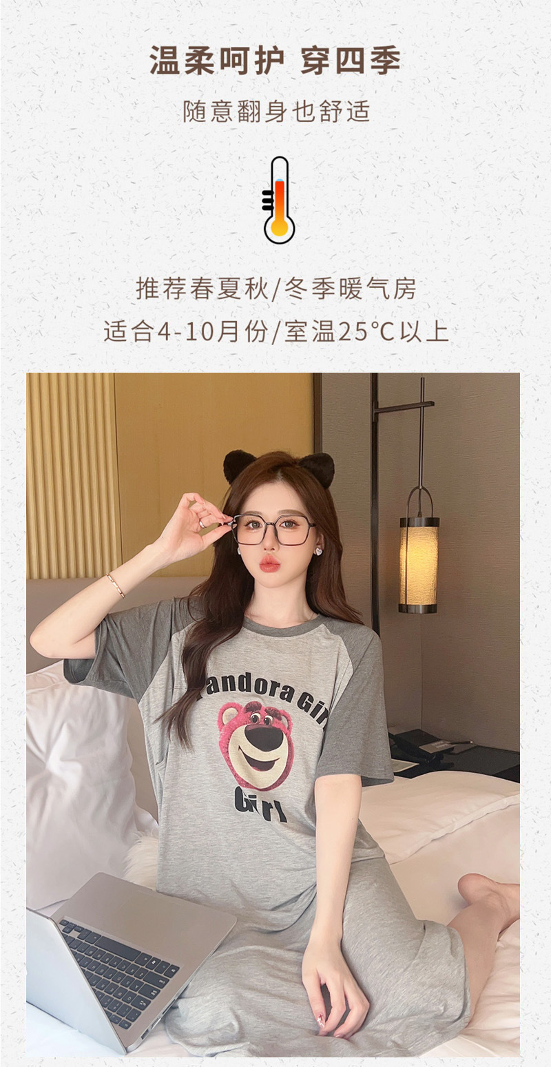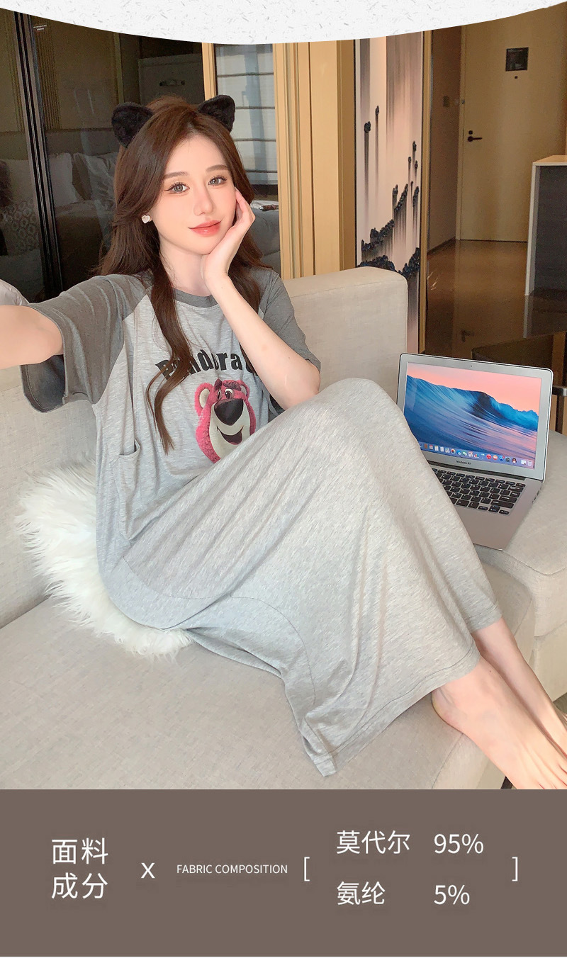 商品名称:夏季哺乳睡裙女莫代尔棉孕产妇喂奶怀孕期短袖薄款连体月子服睡衣