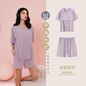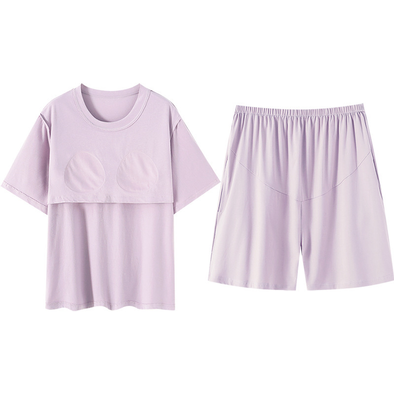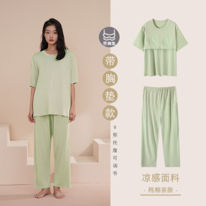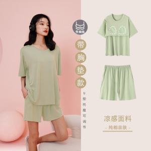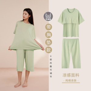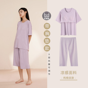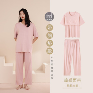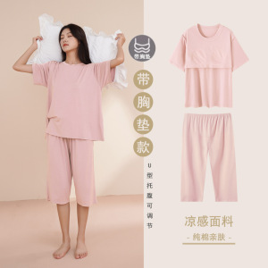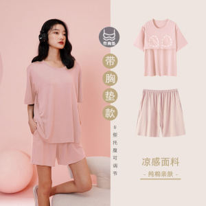 - 商品名称:纯棉睡衣孕妇夏季女带胸垫短袖薄款产后月子可调节托腹家居服套装