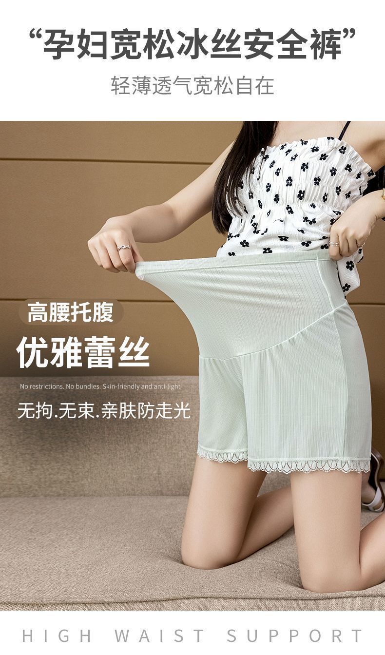 孕妇裤安全裤外穿夏季薄款高腰冰丝宽松打底大码可调节孕期防走光