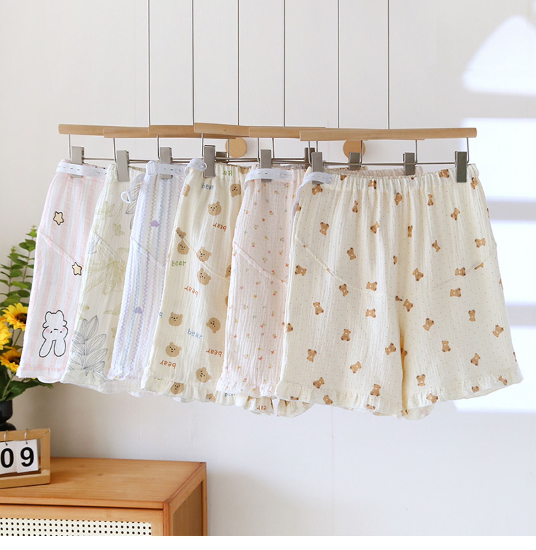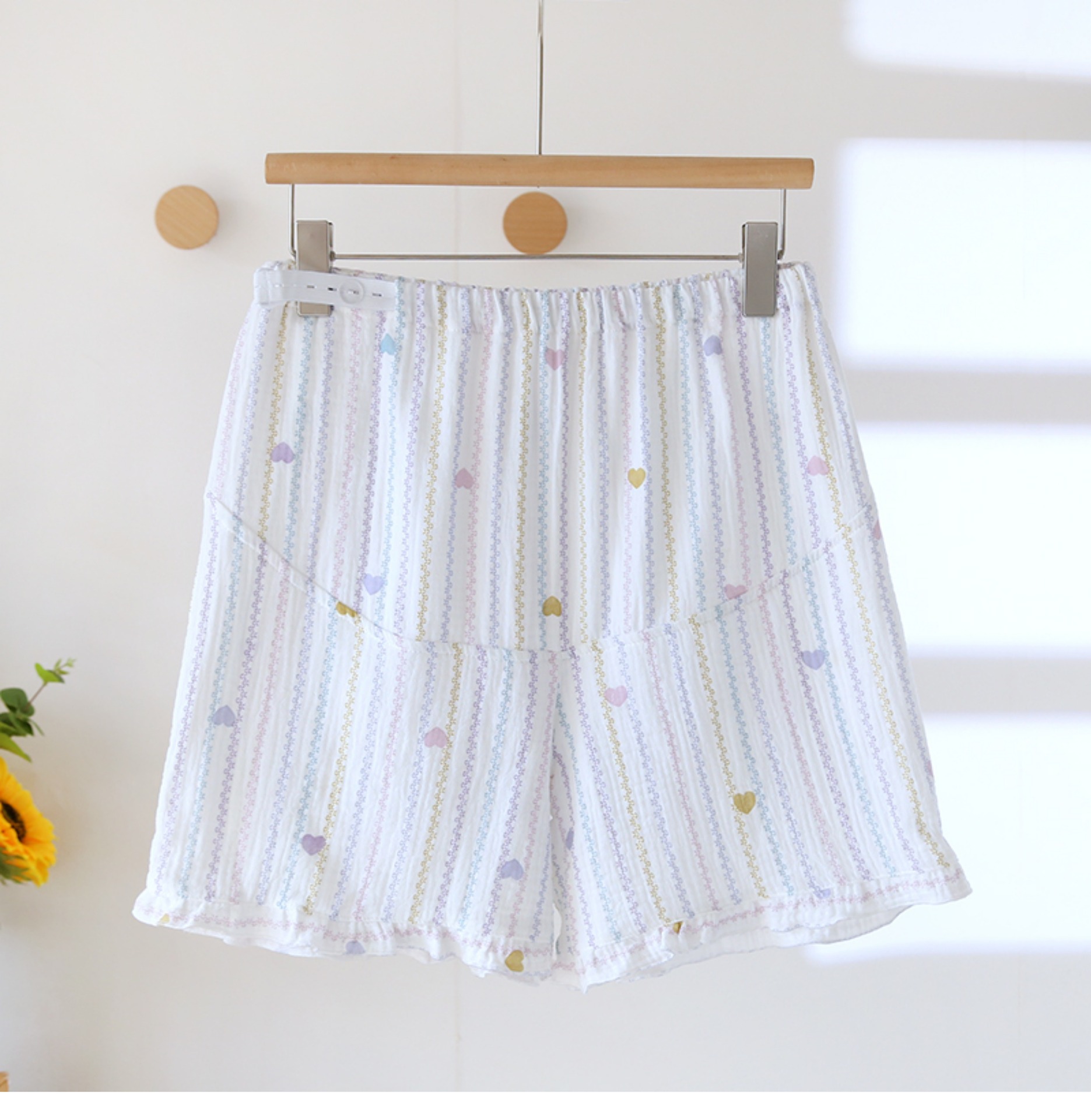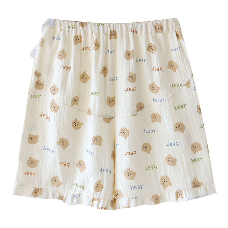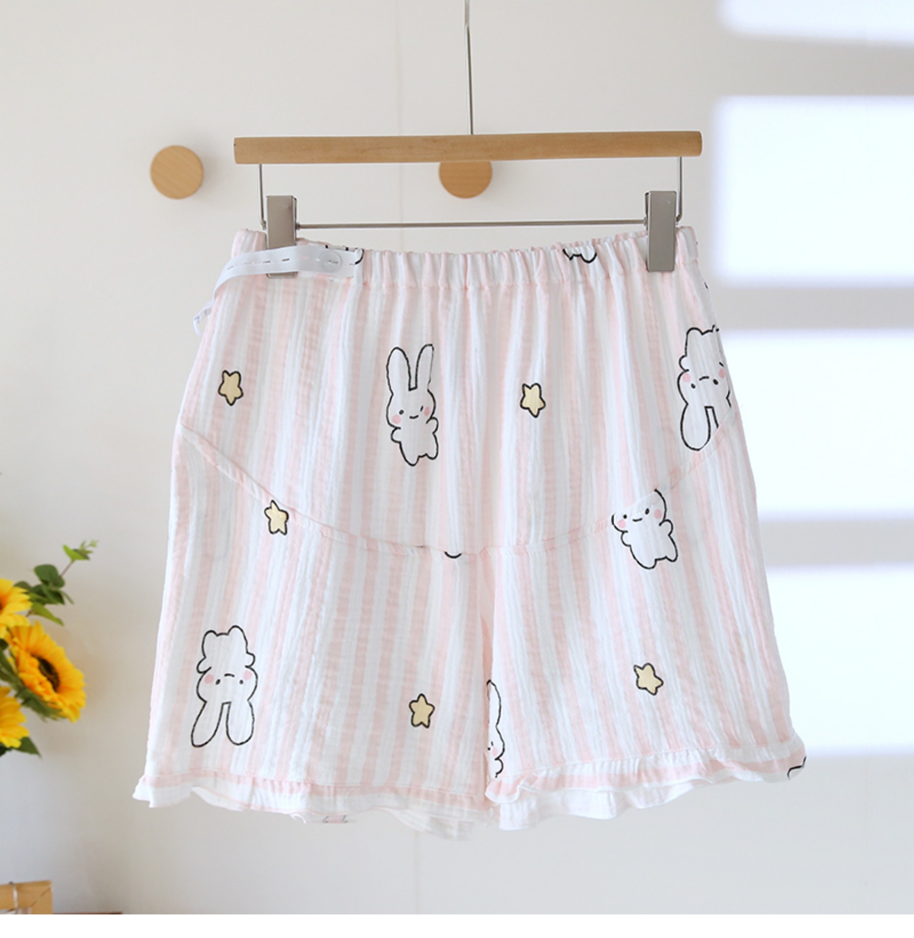 夏季纯棉孕妇睡裤薄款纱布产前产后托腹短裤可调节五分裤月子大码