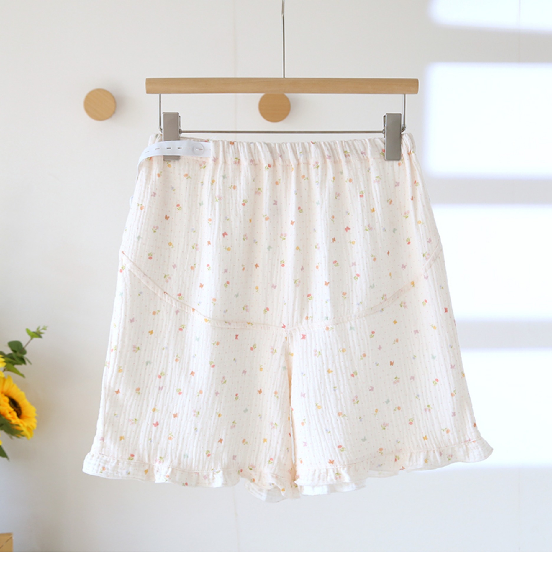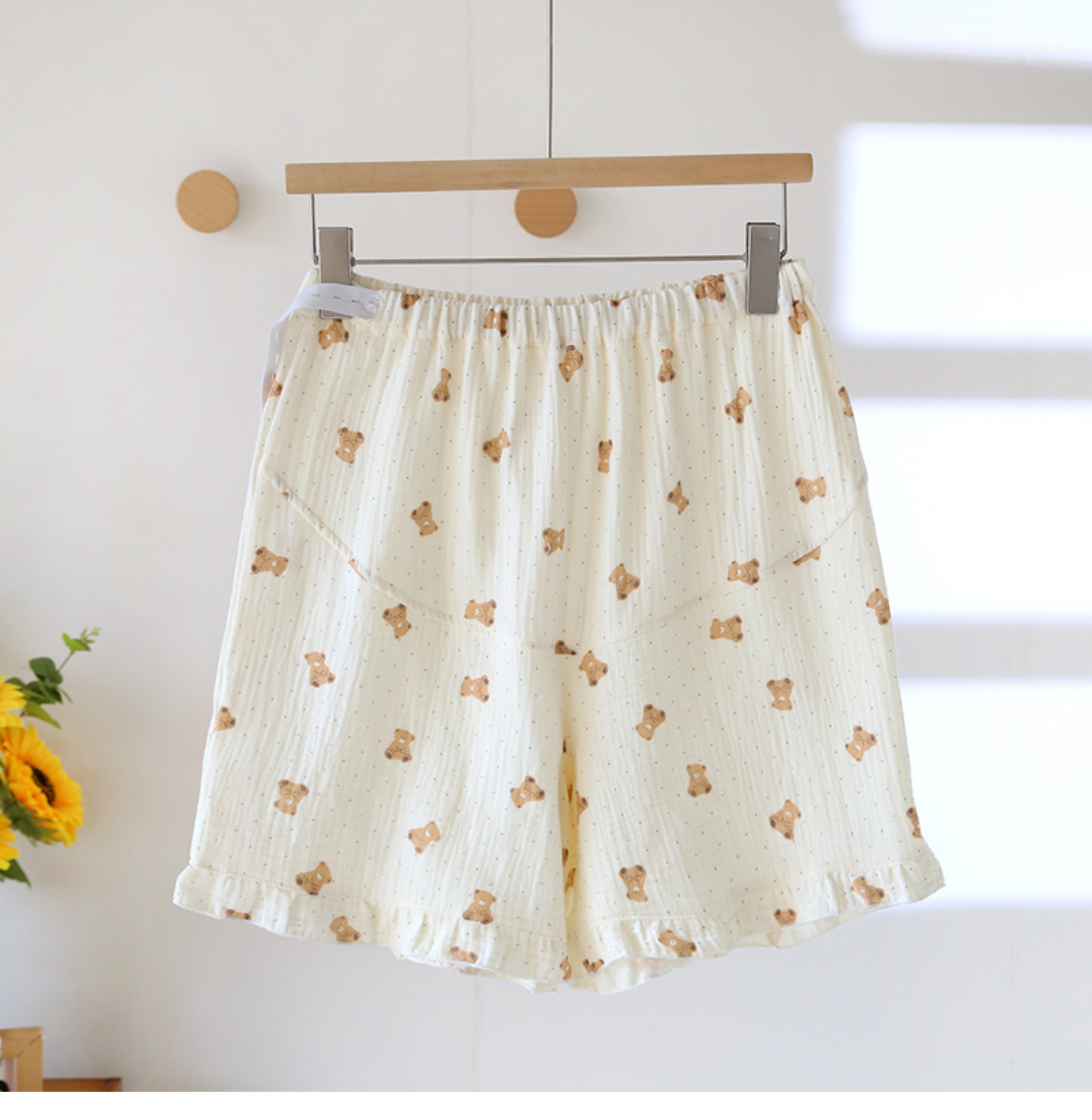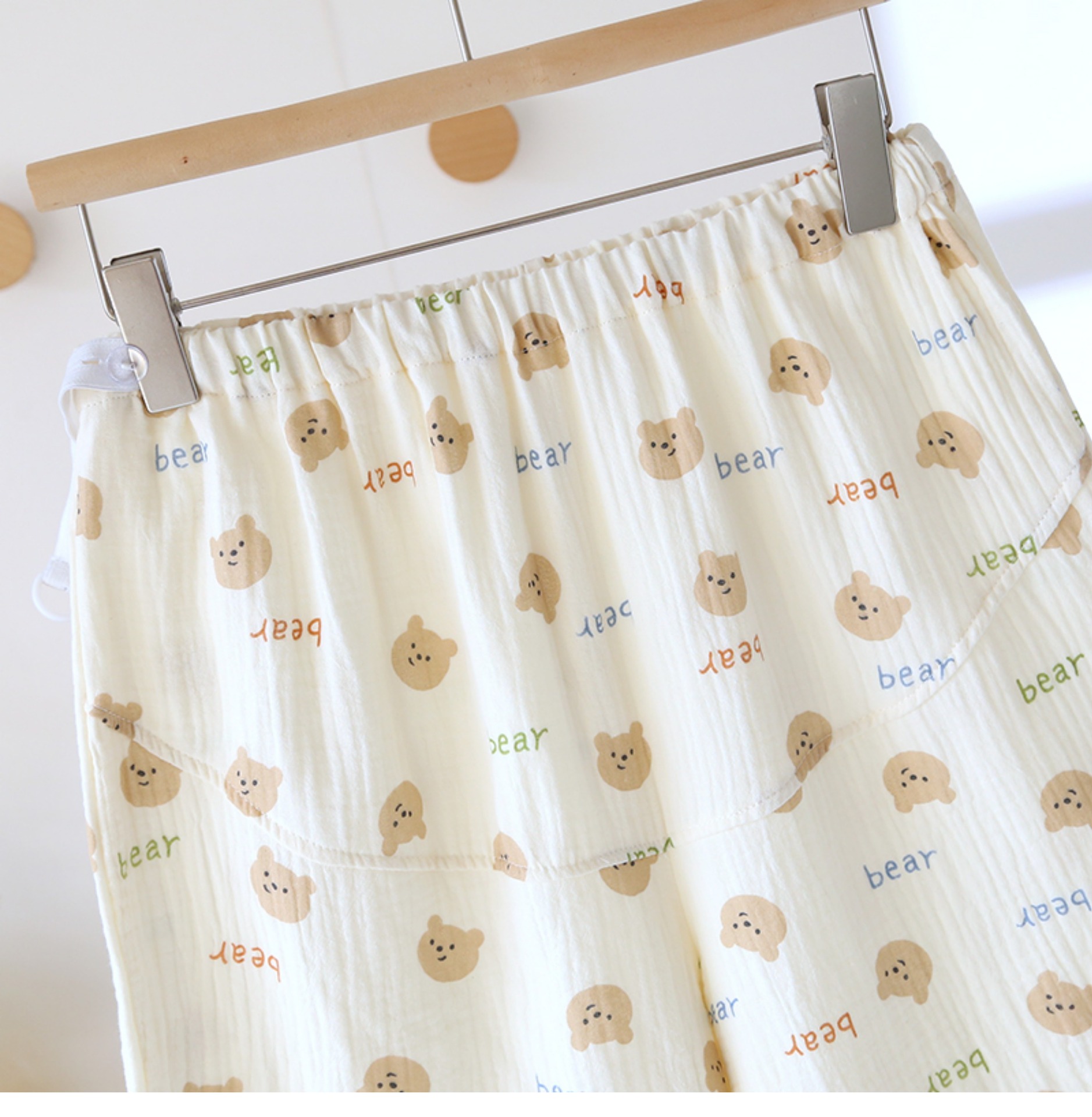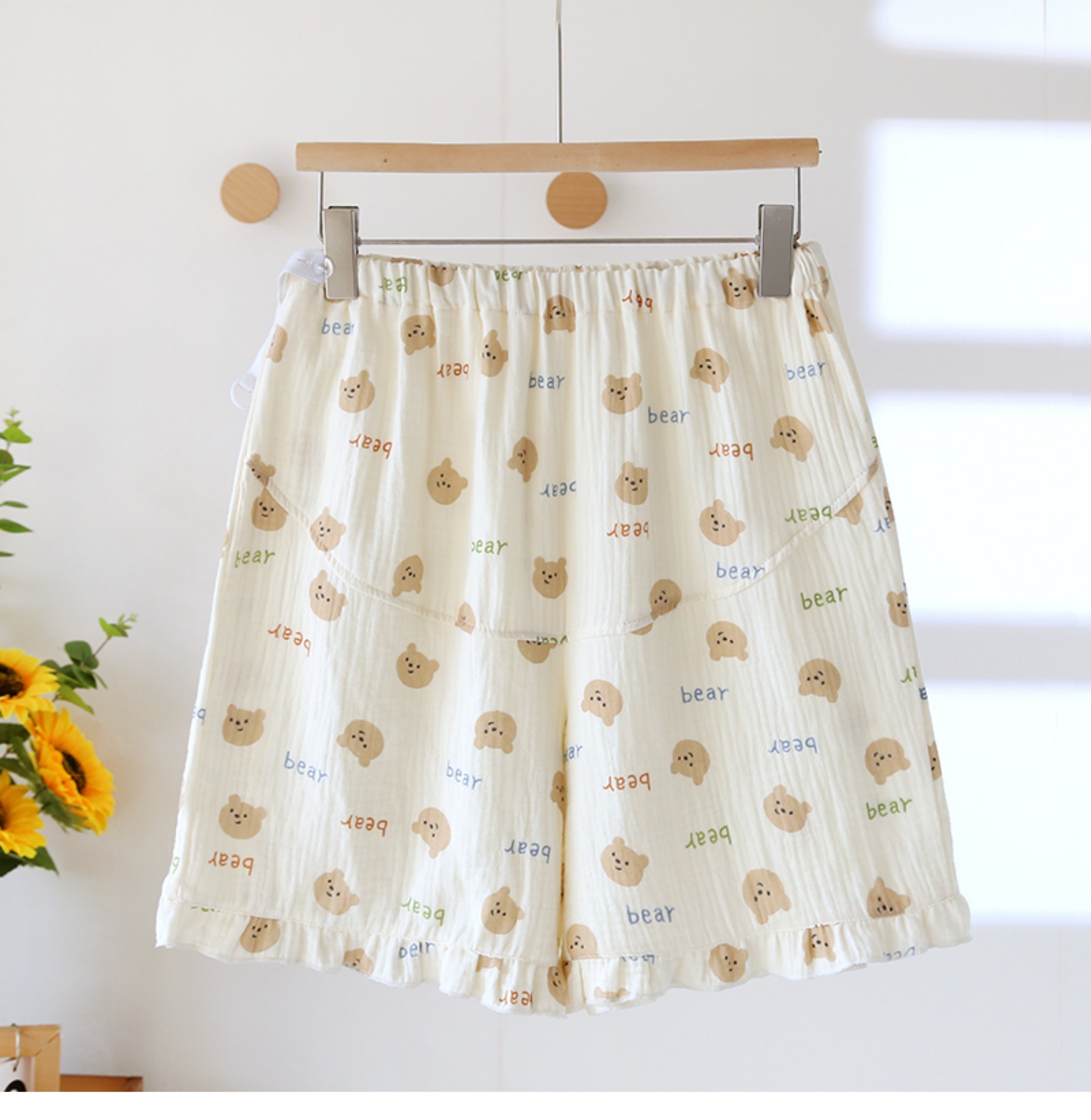 夏季纯棉孕妇睡裤薄款纱布产前产后托腹短裤可调节五分裤月子大码