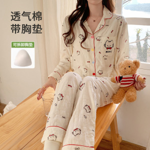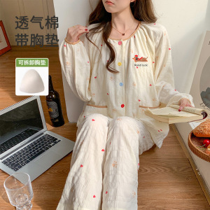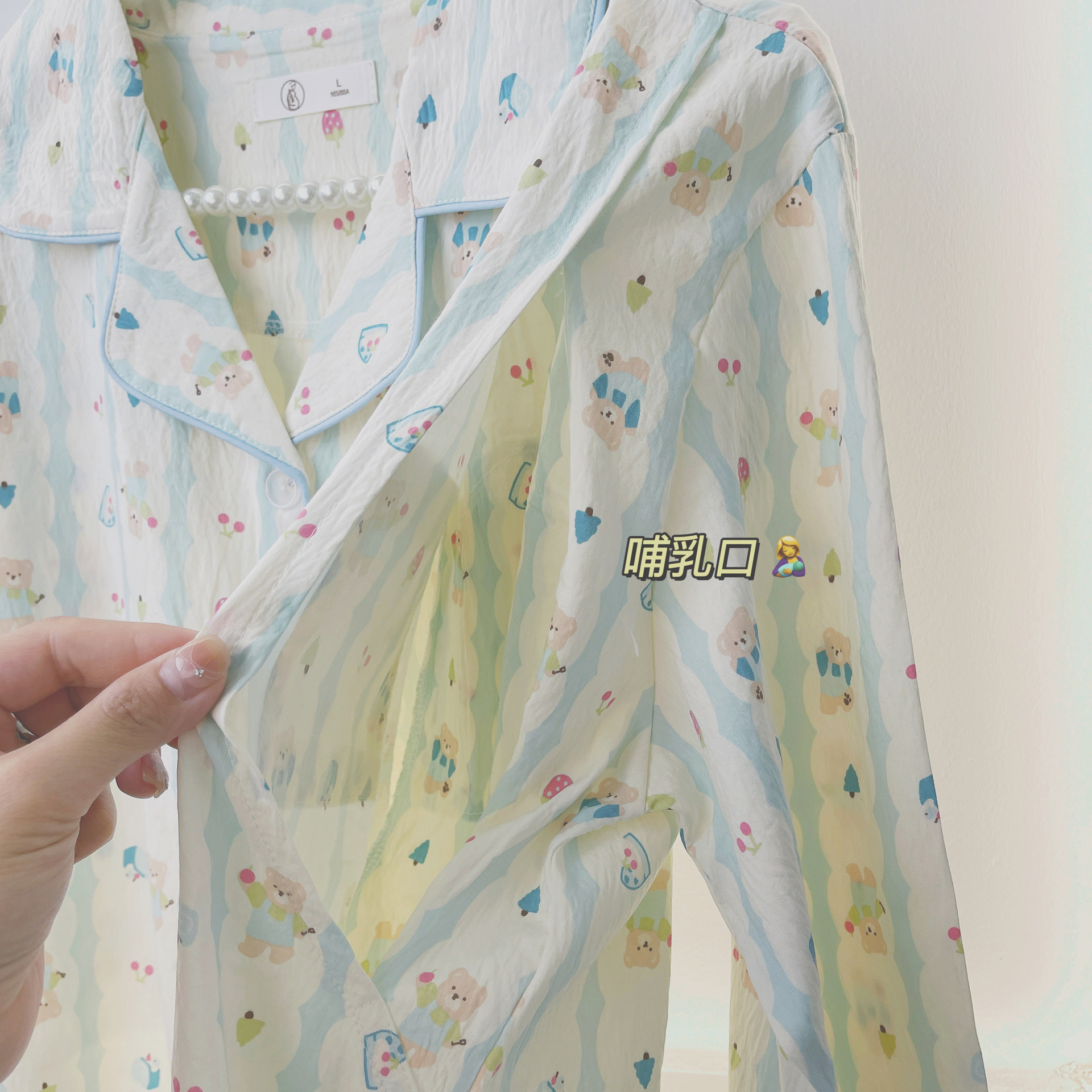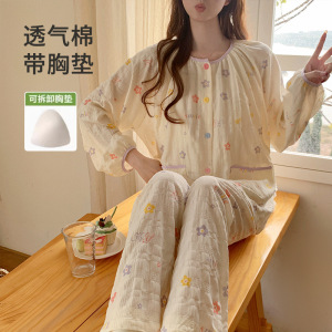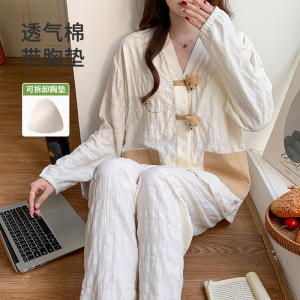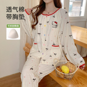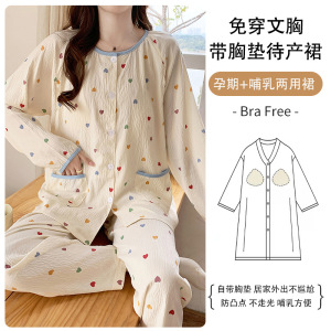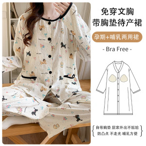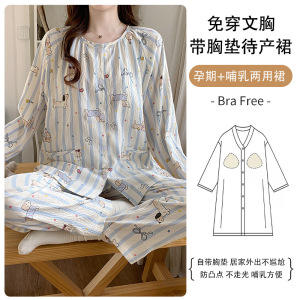 带胸垫月子服春秋季产后云朵棉哺乳睡衣女夏怀孕期孕妇喂奶家居服