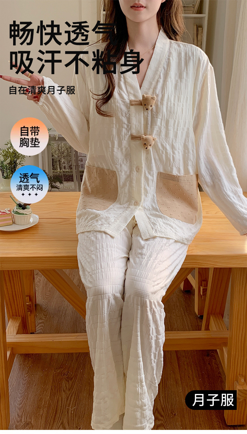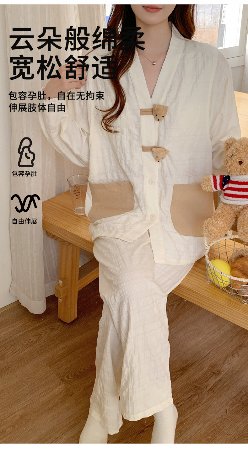 商品名称:带胸垫月子服春秋季产后云朵棉哺乳睡衣女夏怀孕期孕妇喂奶家居服