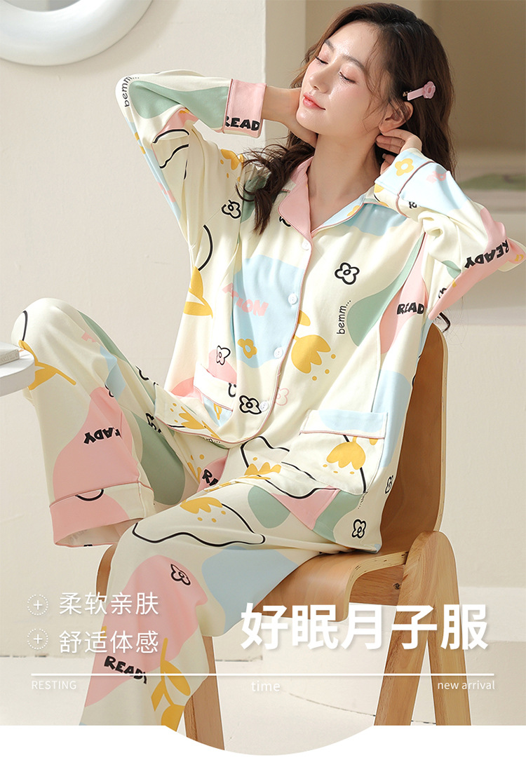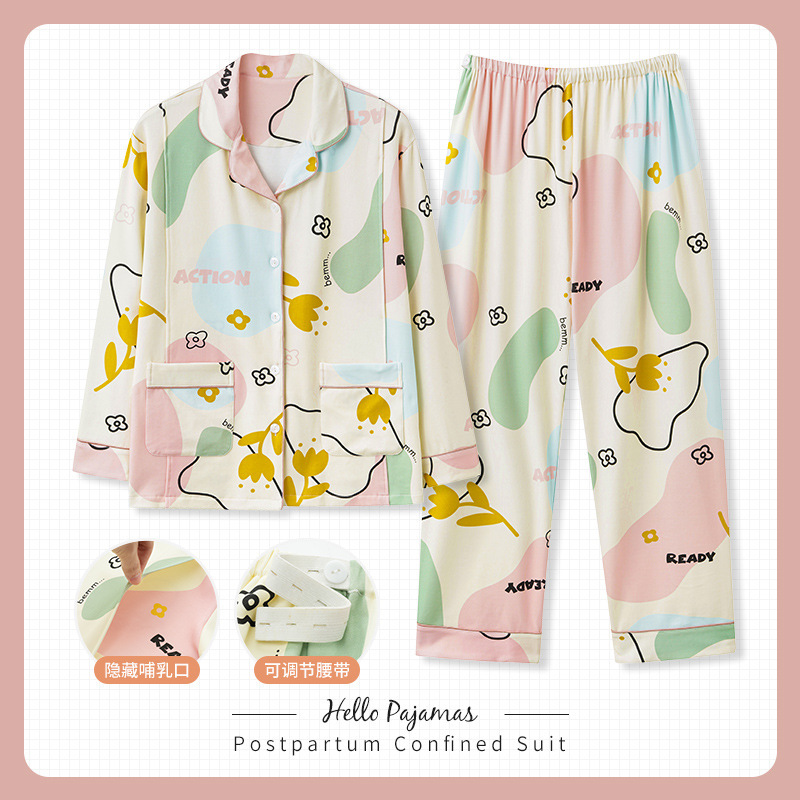 月子服春秋季产后纯棉喂奶加大码家居服秋冬孕妇哺乳睡衣大码套装