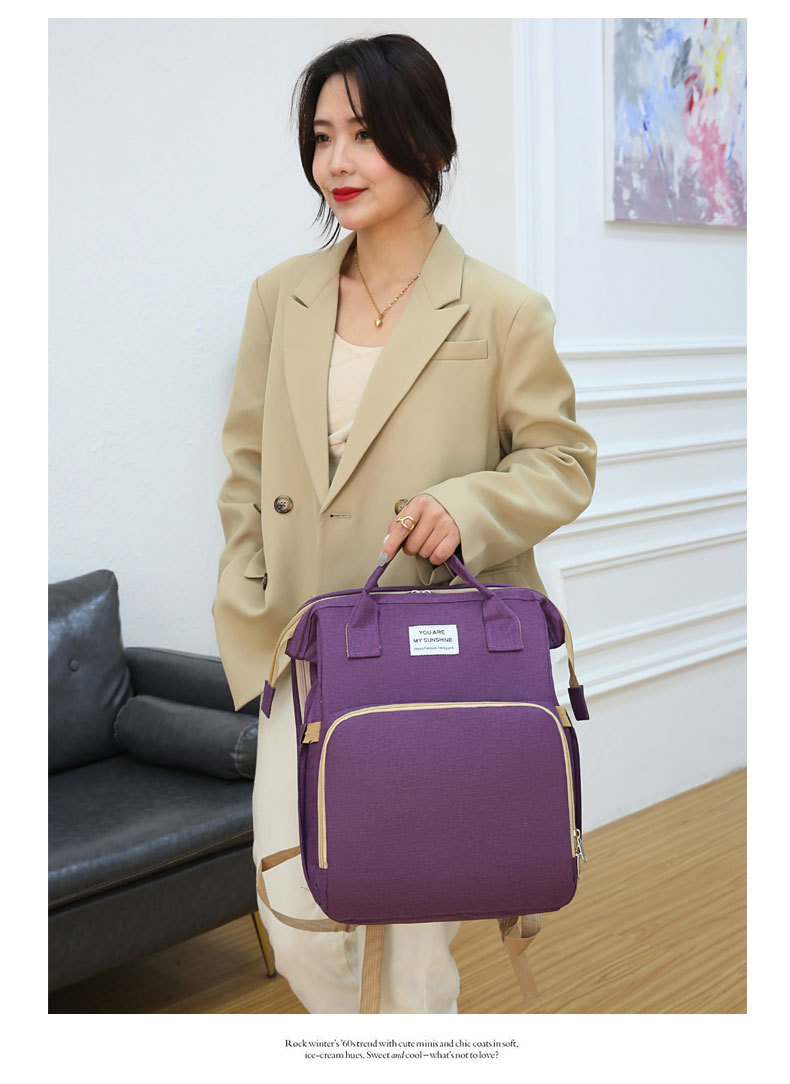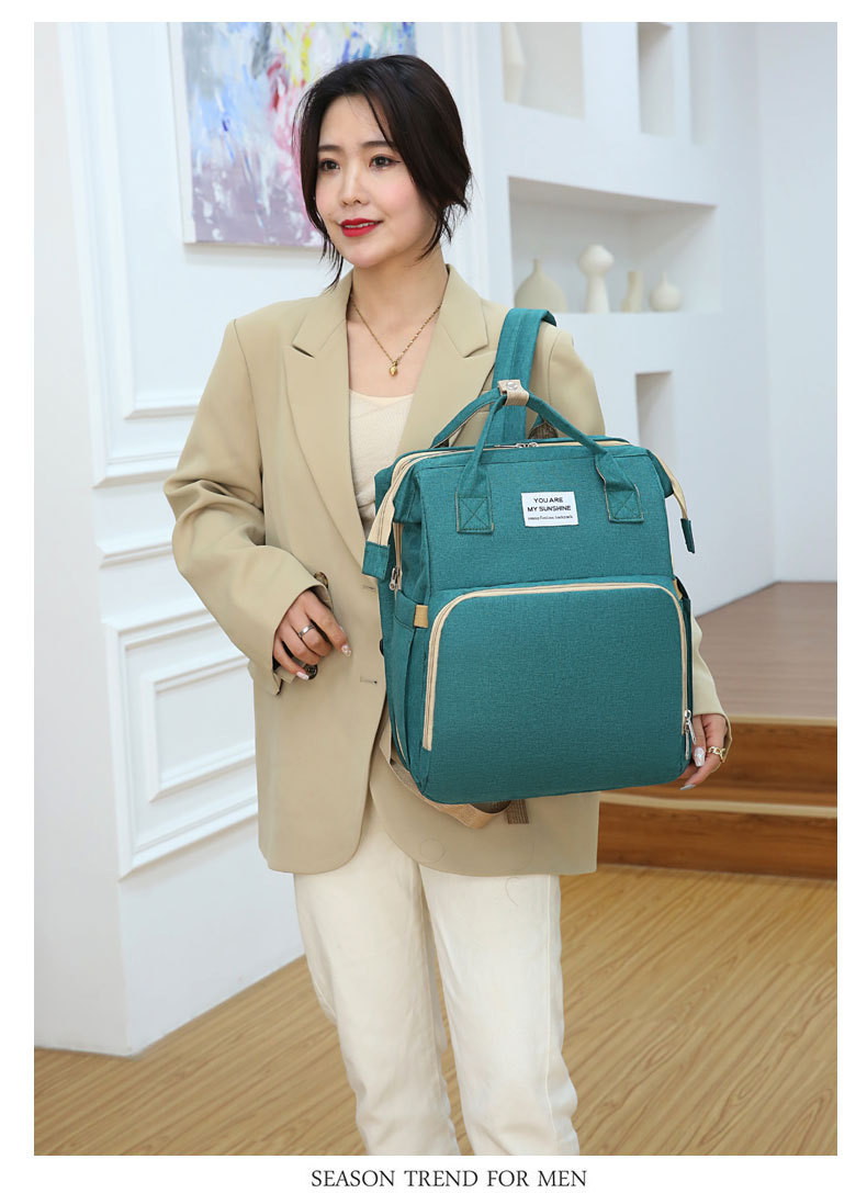 升级款简约妈咪包便携式折叠双肩包多功能大容量婴儿床母婴妈咪包
