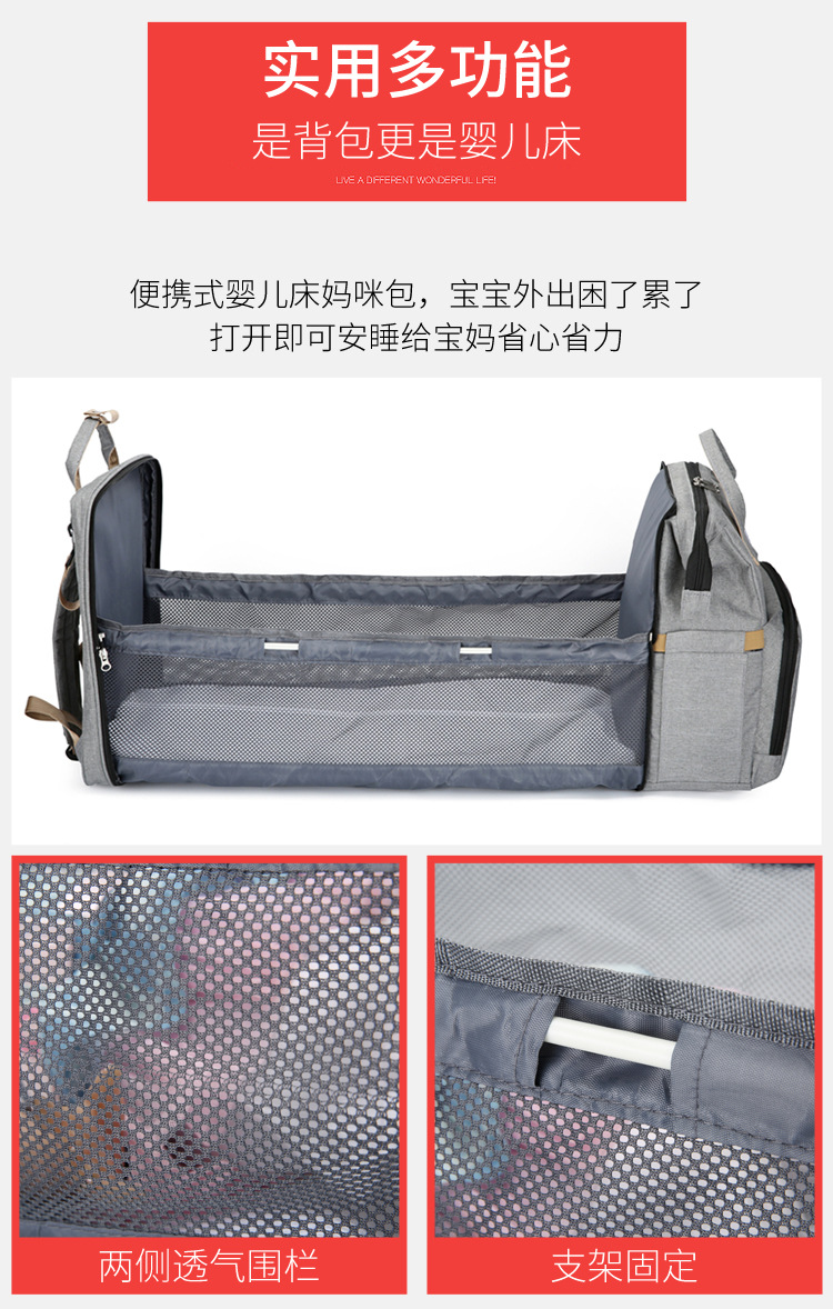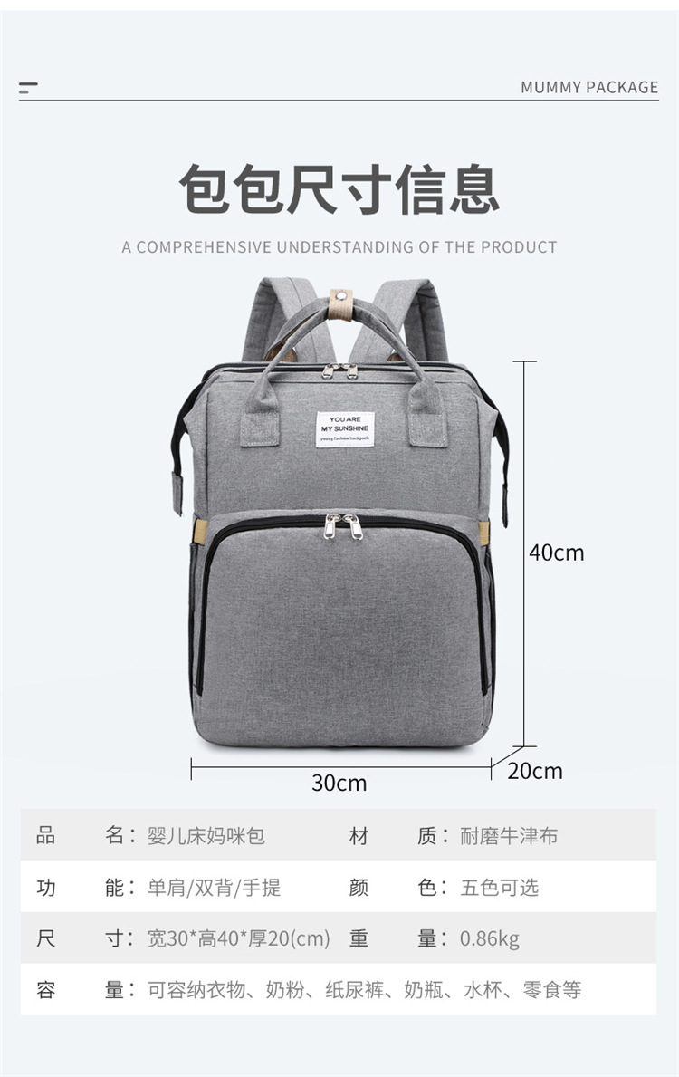 商品名称:升级款简约妈咪包便携式折叠双肩包多功能大容量婴儿床母婴妈咪包