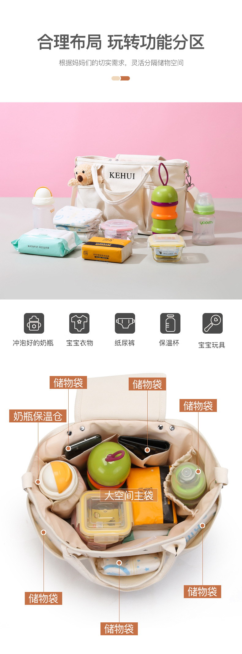 商品名称:妈咪包2024新款爆款单肩斜挎时尚大容量婴儿女包旅行奶瓶母婴包