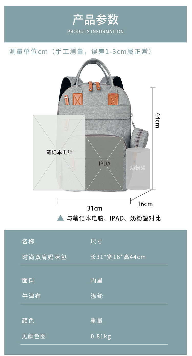 商品名称:新款大容量多功能便携妈咪包待产包宝妈双肩背包母婴包送尿垫