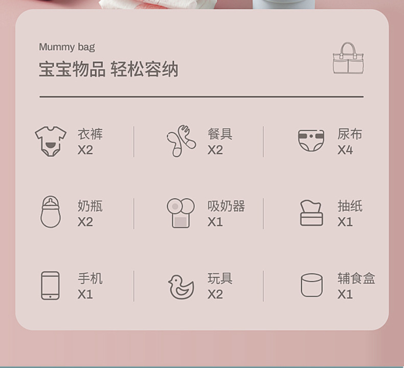 商品名称:婴儿外出包母婴包2024新款大容量防水妈咪包可挂童车宝妈背包防水