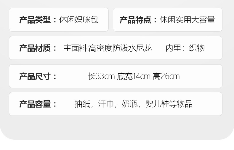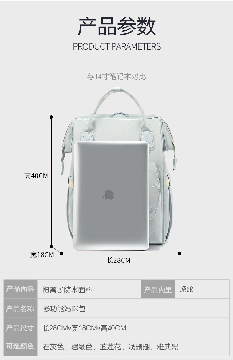 商品名称:无忧狐多功能妈咪包大容量时尚外出母婴包宝妈带娃出门背包