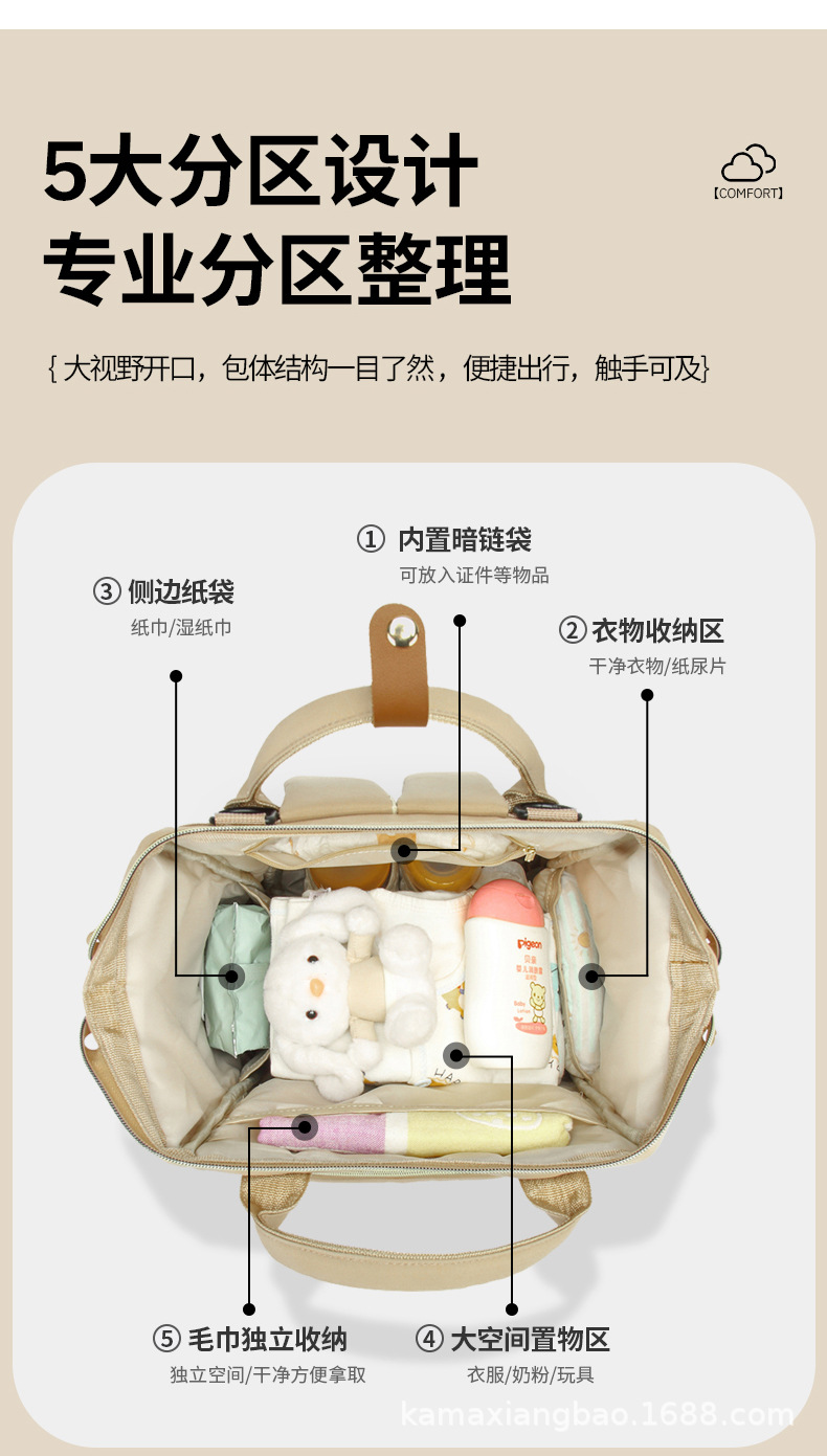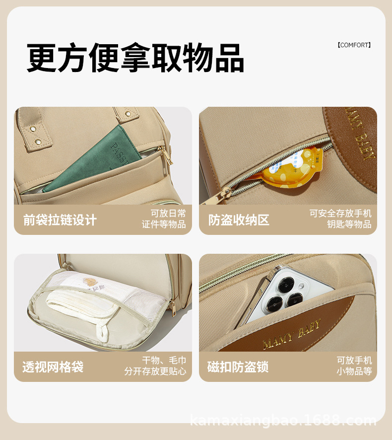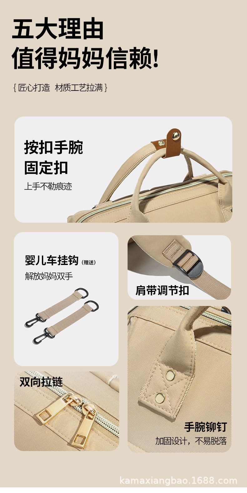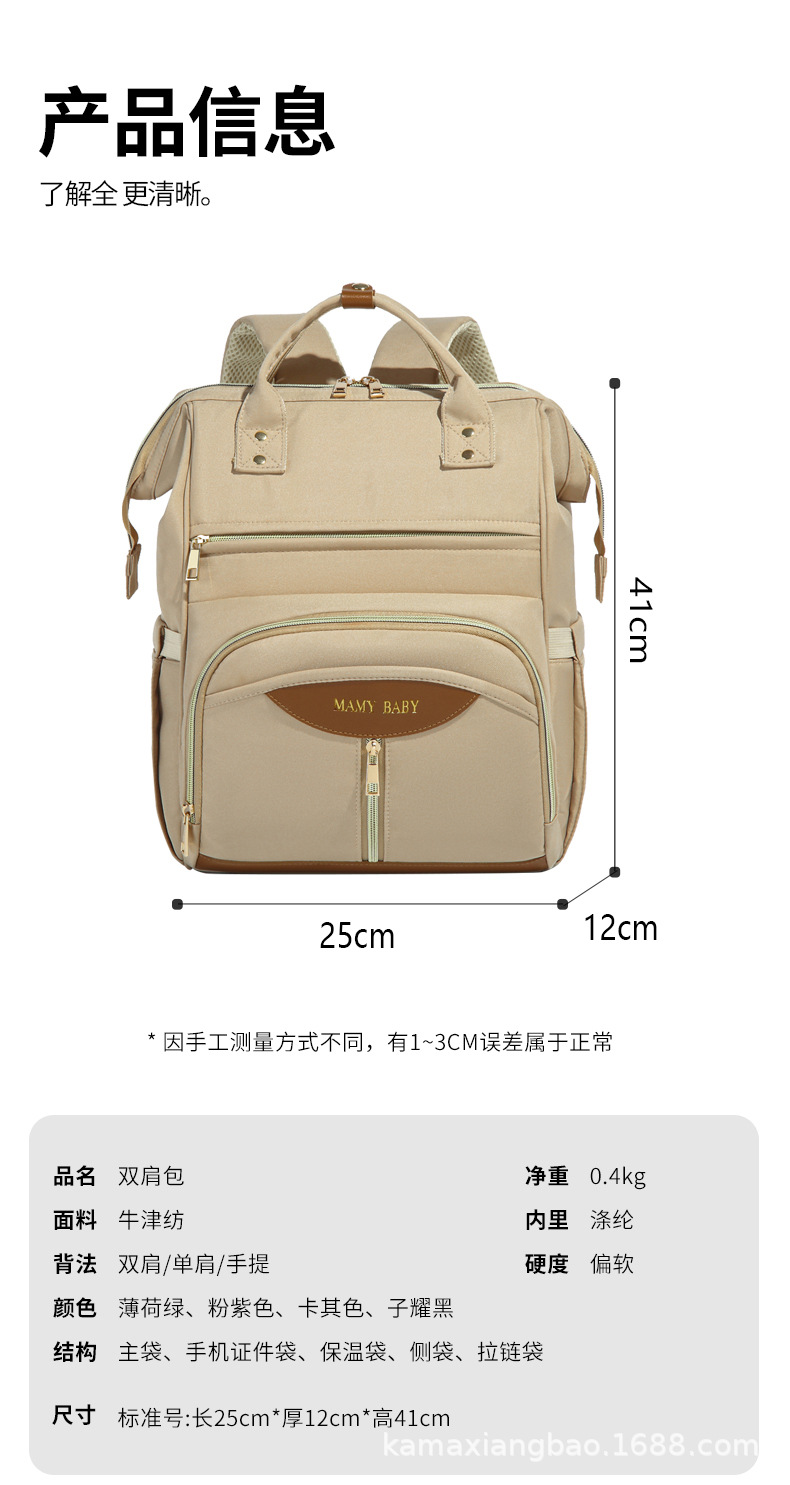 商品名称:2025新款时尚手提双肩包多功能大容量母婴包带娃外出妈咪包