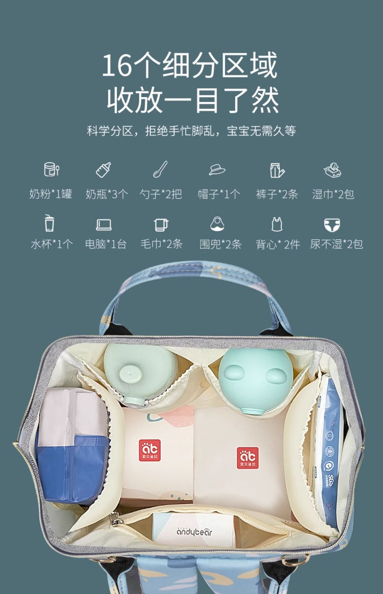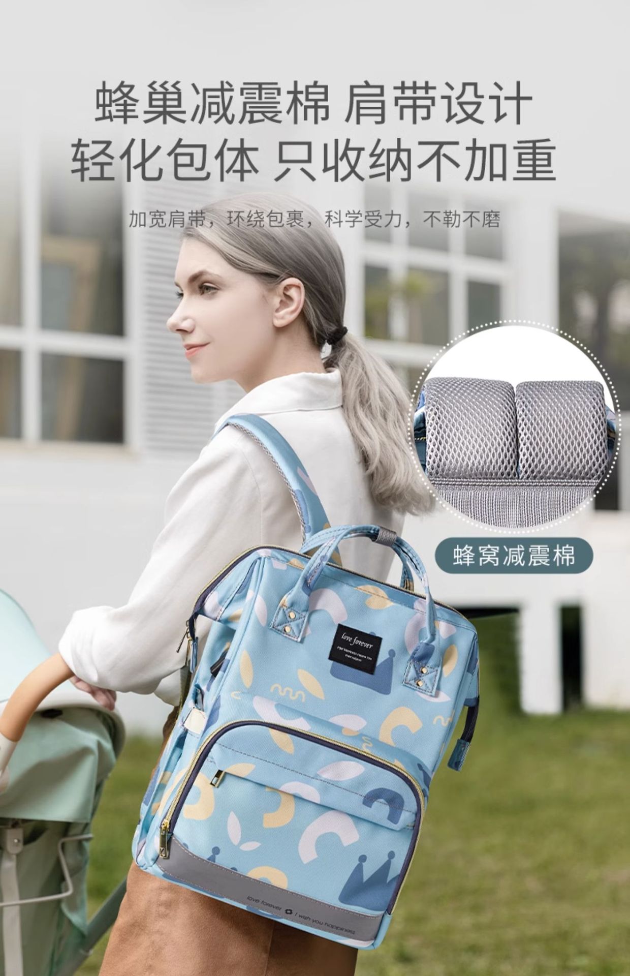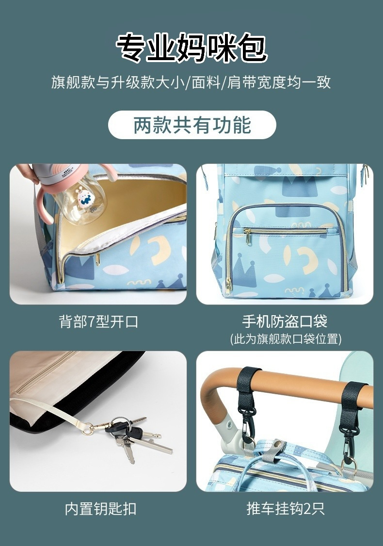 商品名称:妈咪妈妈母婴背包2024新款手提双肩大容量外出轻便斜挎多功能牛津