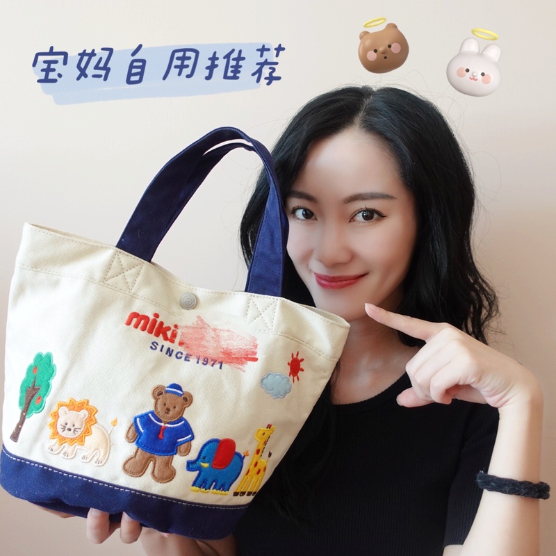 miki风妈咪包溜娃袋帆布手提轻便小巧大容量母婴包外出托特包卡通