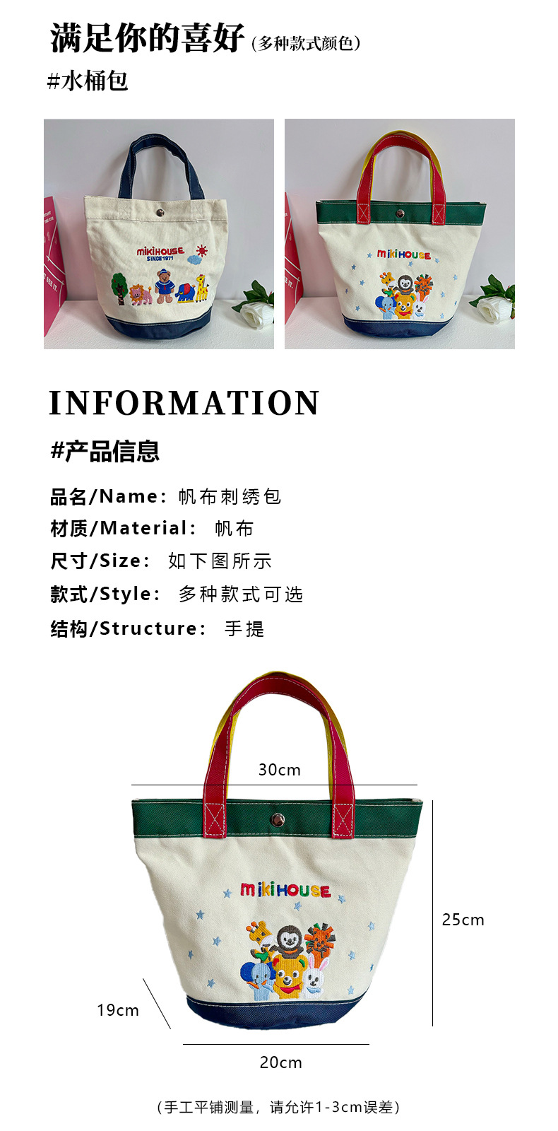 商品名称:miki风妈咪包溜娃袋帆布手提轻便小巧大容量母婴包外出托特包卡通