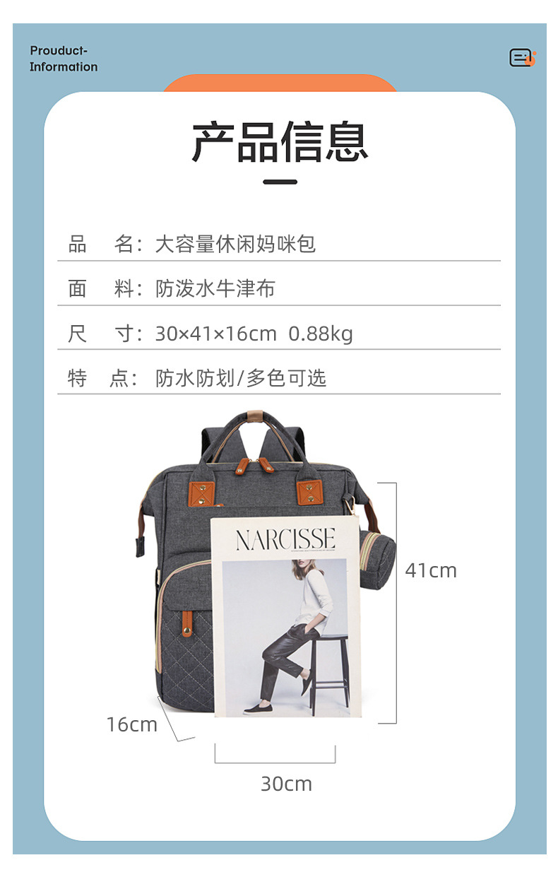 商品名称:妈咪双肩包外出轻便母婴外出手提包多功能双肩包干湿分离待产包女