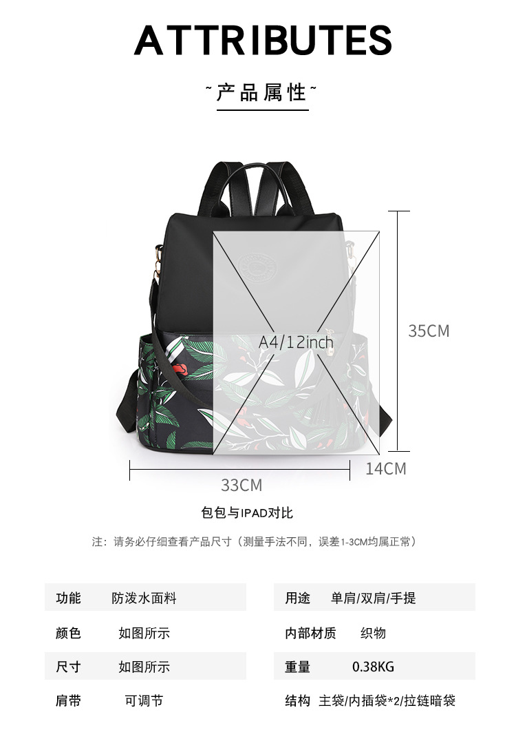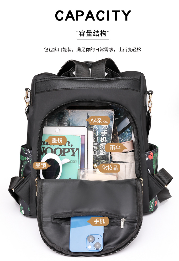 商品名称:牛津布双肩包妈妈包新款时尚轻便女士防盗包大容量母婴包旅行背包