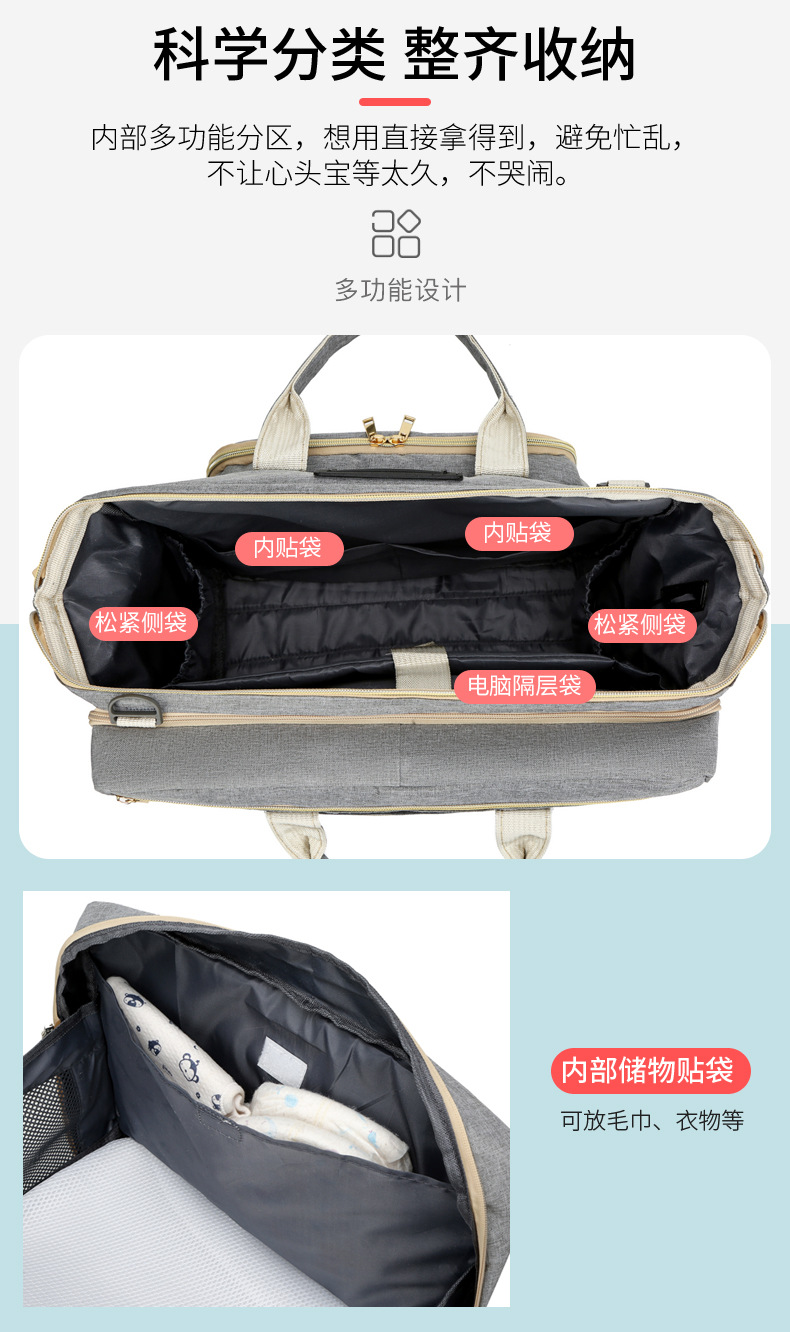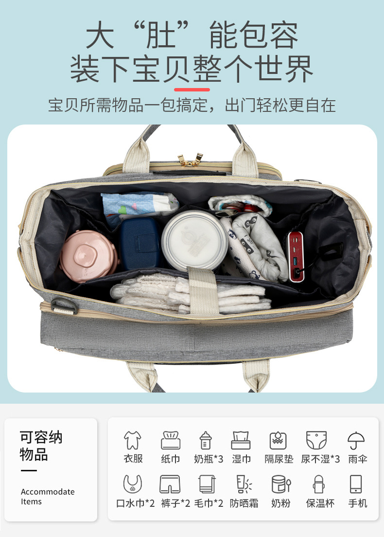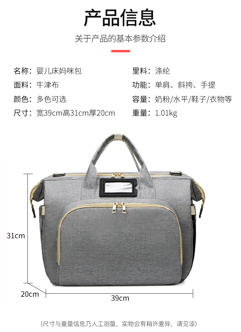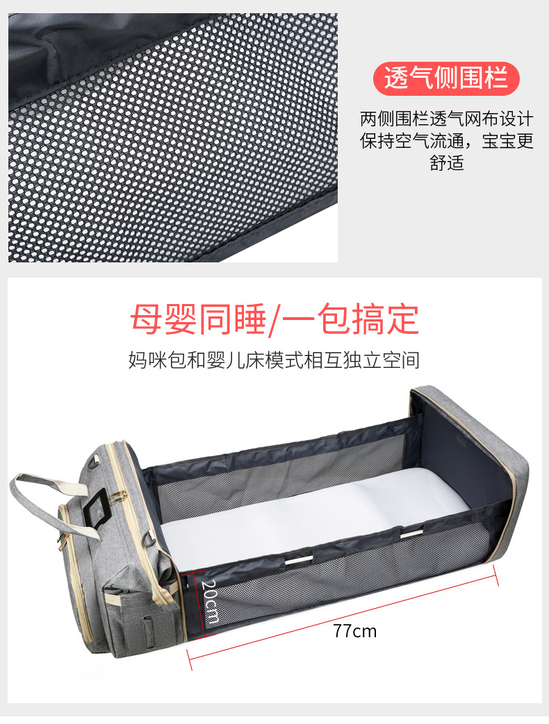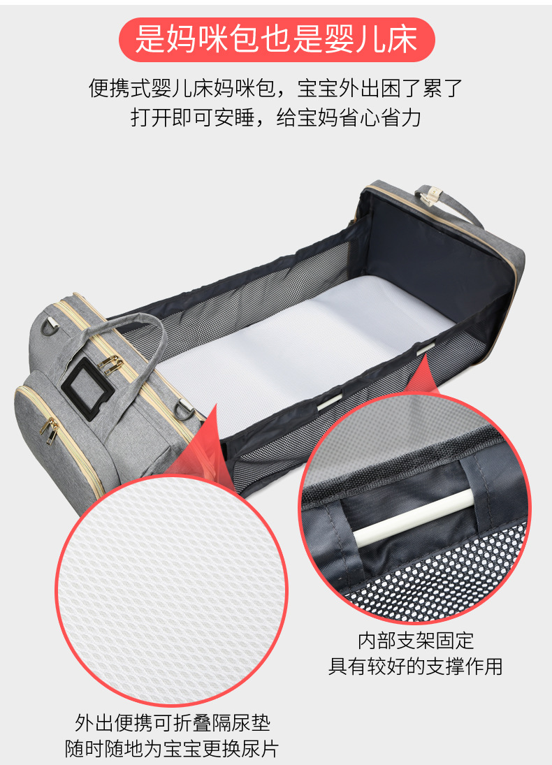商品名称:严选简约多功能妈咪包便携可折叠婴儿床包2024新款大容量母婴包