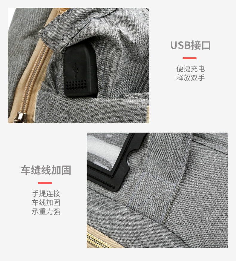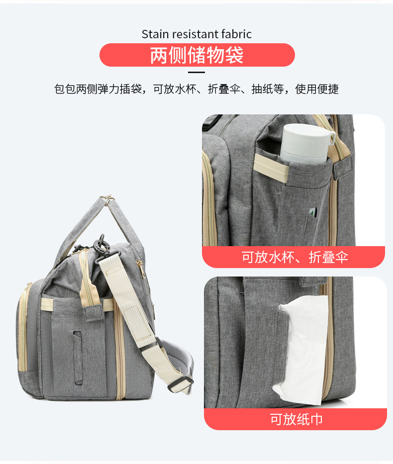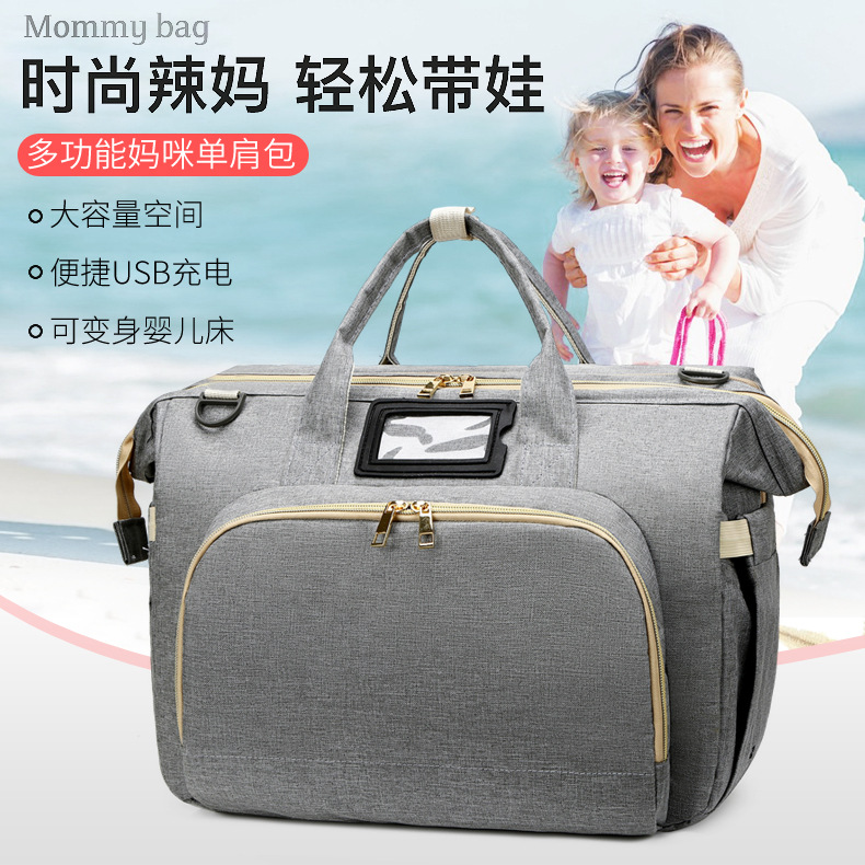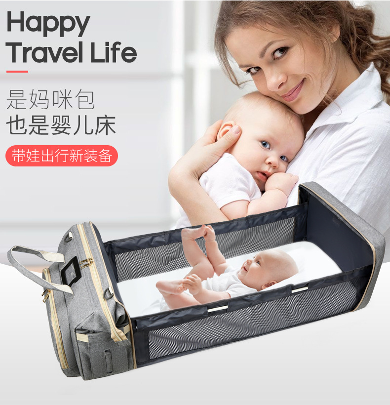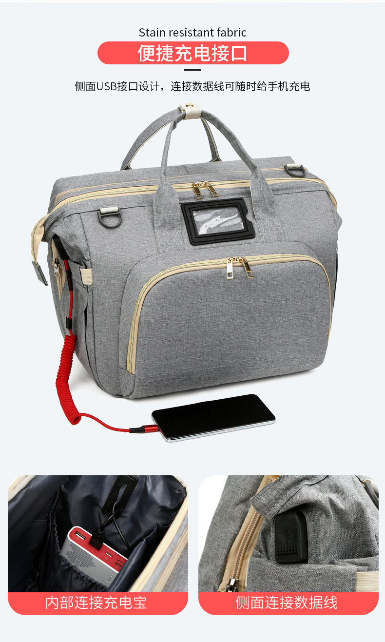 商品名称:严选简约多功能妈咪包便携可折叠婴儿床包2024新款大容量母婴包